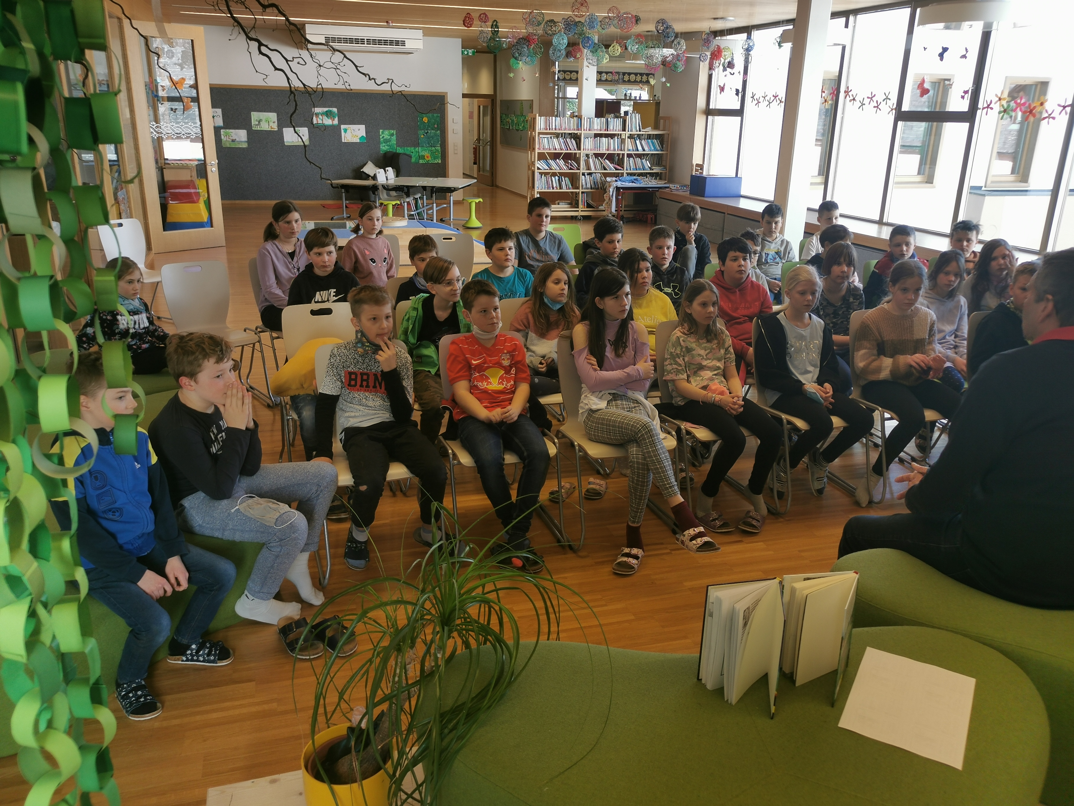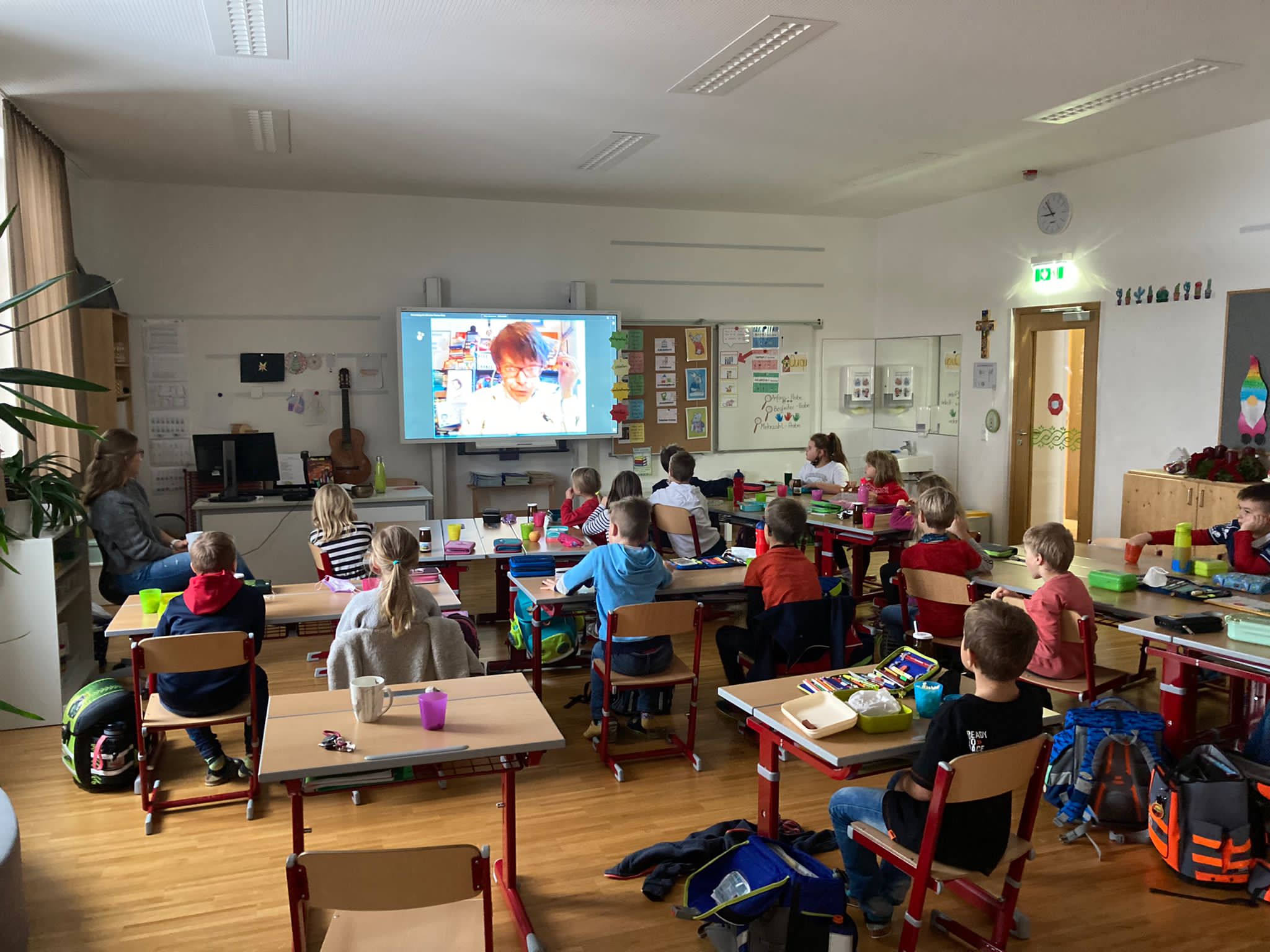 Die Kinder der 2b Klasse sind am Beruf „Autor bzw. Autorin“ sehr interessiert. Sie schreiben erste eigene Geschichten und es entstehen selbstgestaltete Bilderbücher. Deshalb nahm die zweite Klasse an der Online – Lesung von Markus Köhle teil. Der Kinderbuchautor beantwortete zahlreiche Fragen zum Beruf eines Autors und las ihnen seine etwas anderen Mäusegeschichten vor. Nun ist die Klasse gefordert, eine eigene Mäusegeschichte zu erfinden und somit am Gewinnspiel teilzunehmen. Dabei sind der Phantasie keine Grenzen gesetzt, wodurch schon erste Idee von Bankfachmäusen, Polizeimäusen und Adventmäusen, … in den Köpfen der Kinder herumschwirren. Wir sind schon sehr gespannt und würden uns über einen Gewinn natürlich sehr freuen.