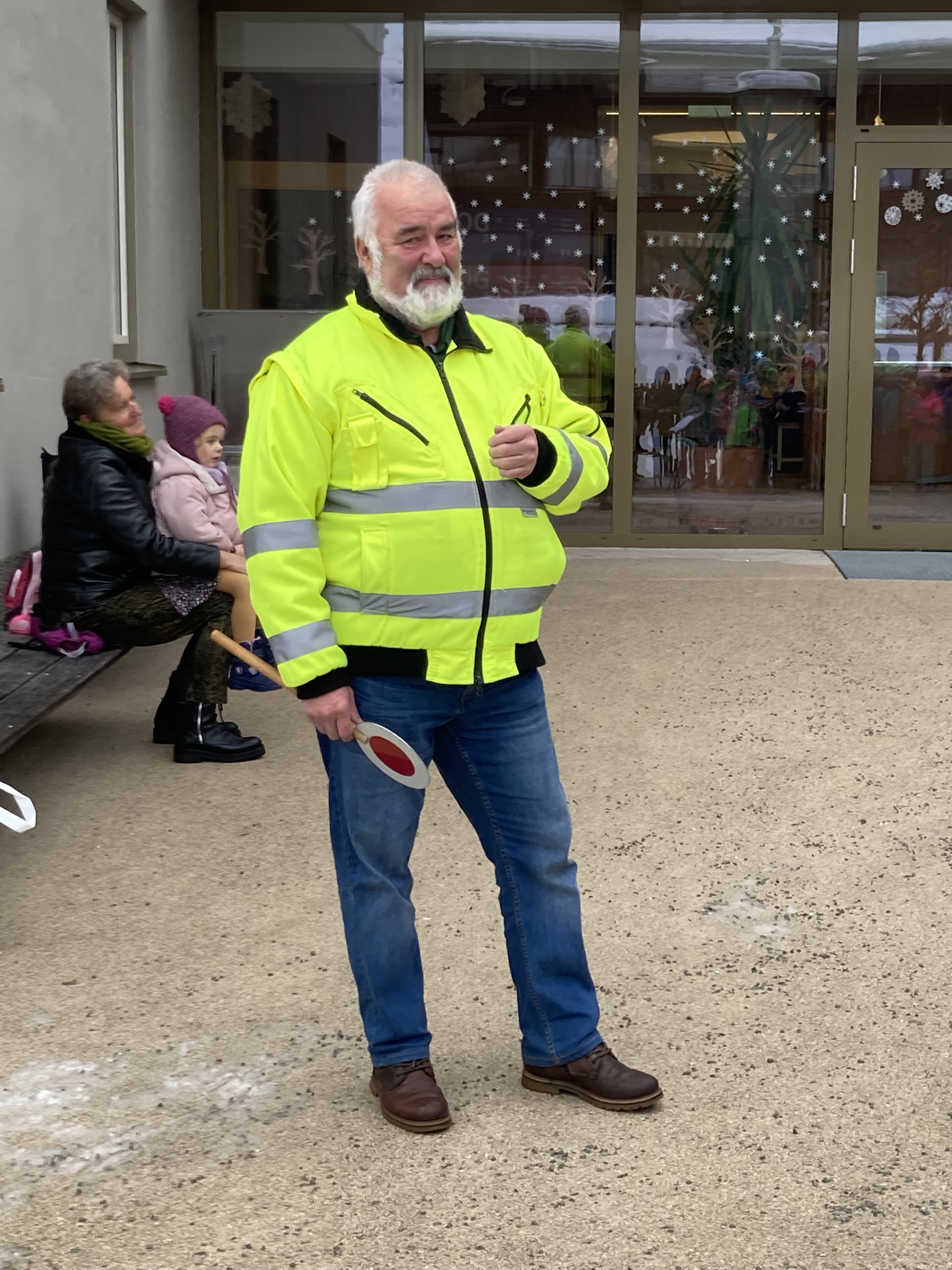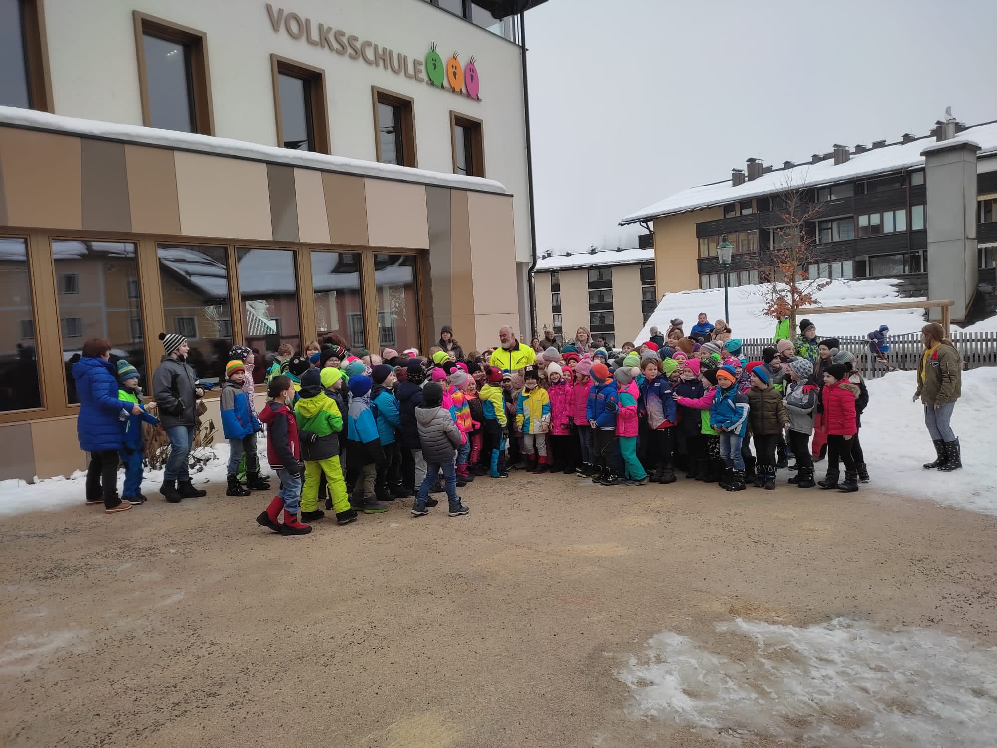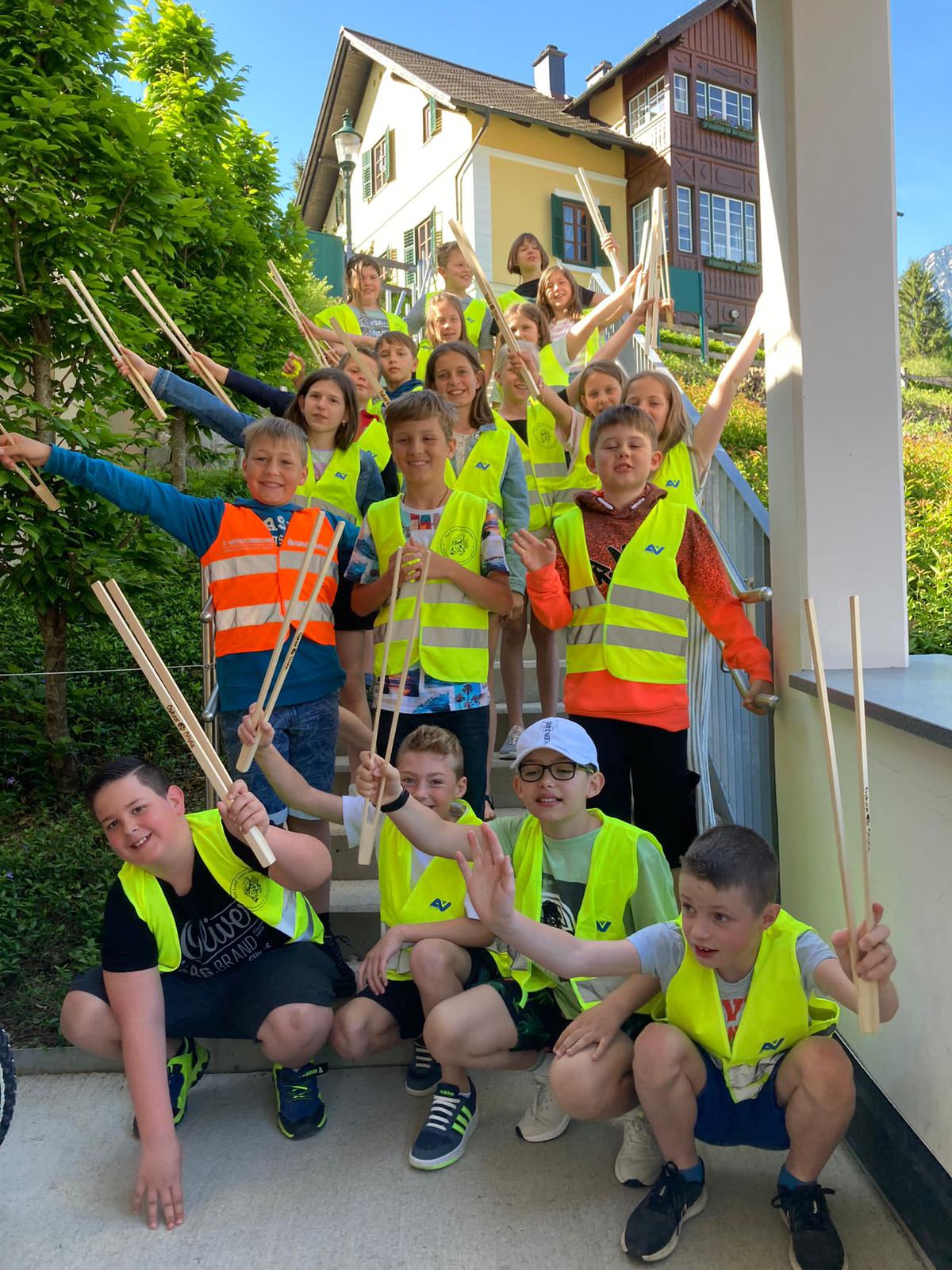 Die Schülerinnen und Schüler, das Kollegium und der Elternverein der Volksschule Bad Aussee mit musikalischem Schwerpunkt bedanken sich bei Konrad Binna für seine großartige Arbeit als Schülerlotse – natürlich standesgemäß mit einem Lied.