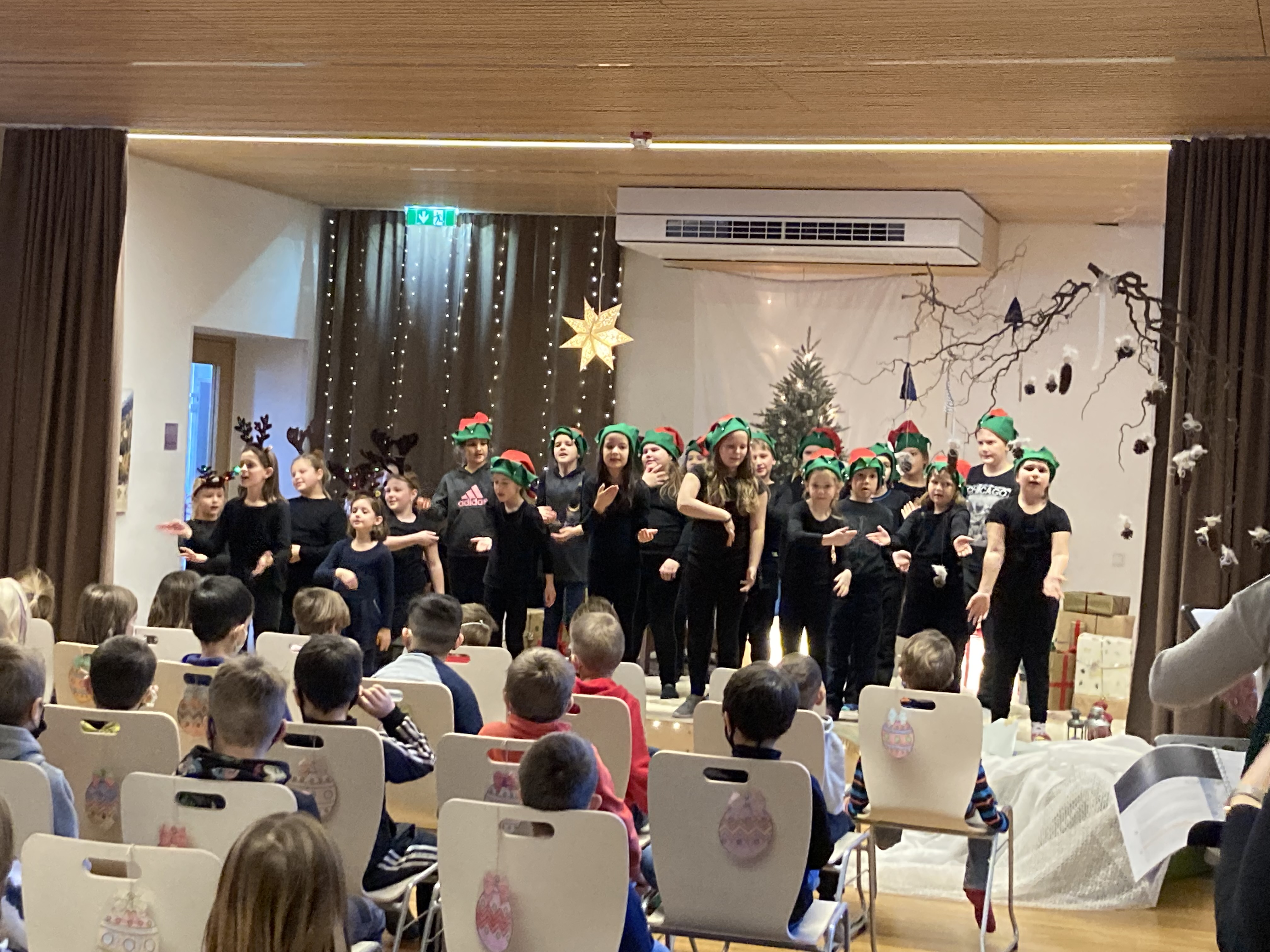 Neben Mathematik, Deutsch, Sachunterricht und der Erfüllung des Lehrplanes blieb auch Zeit zu basteln und zu werken. Die Aula wurde weihnachtlich geschmückt und ein Mini-Musical einstudiert.
