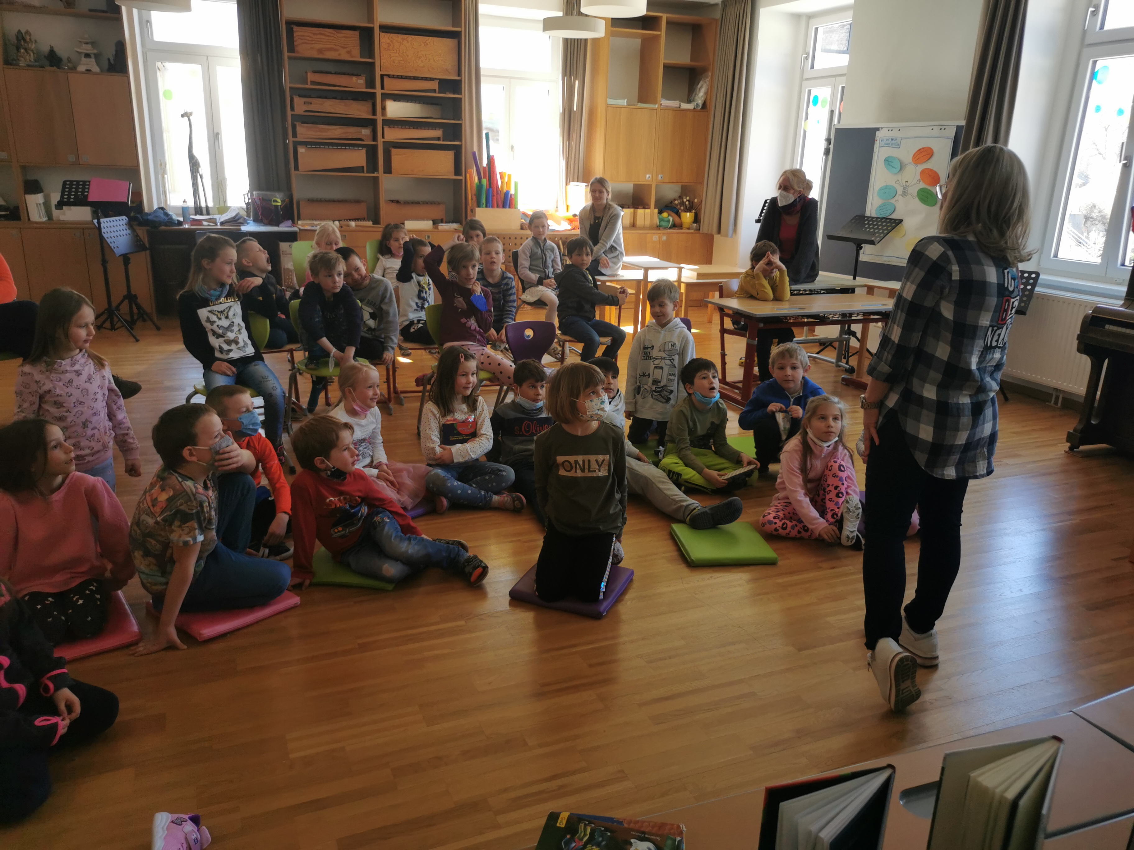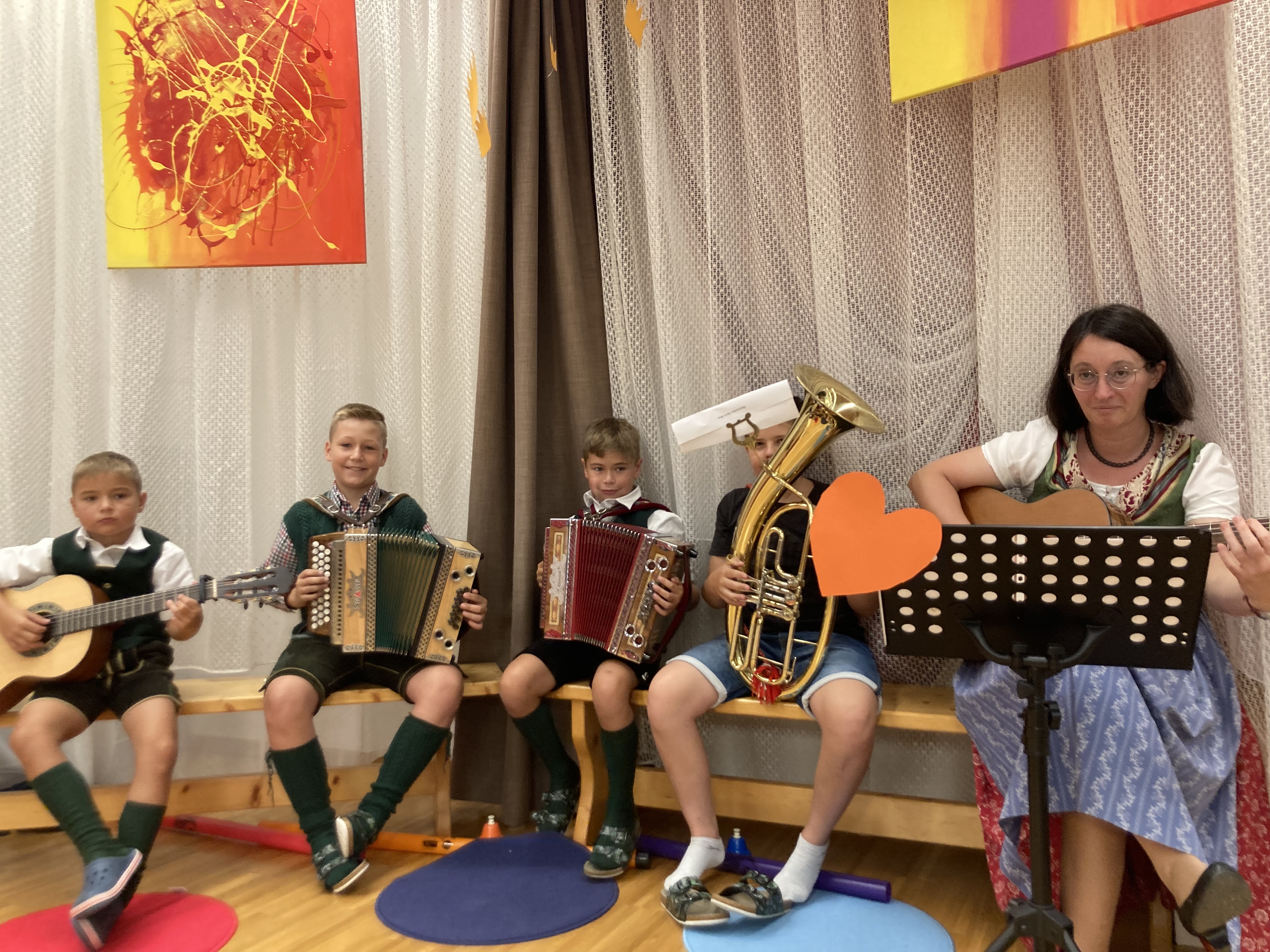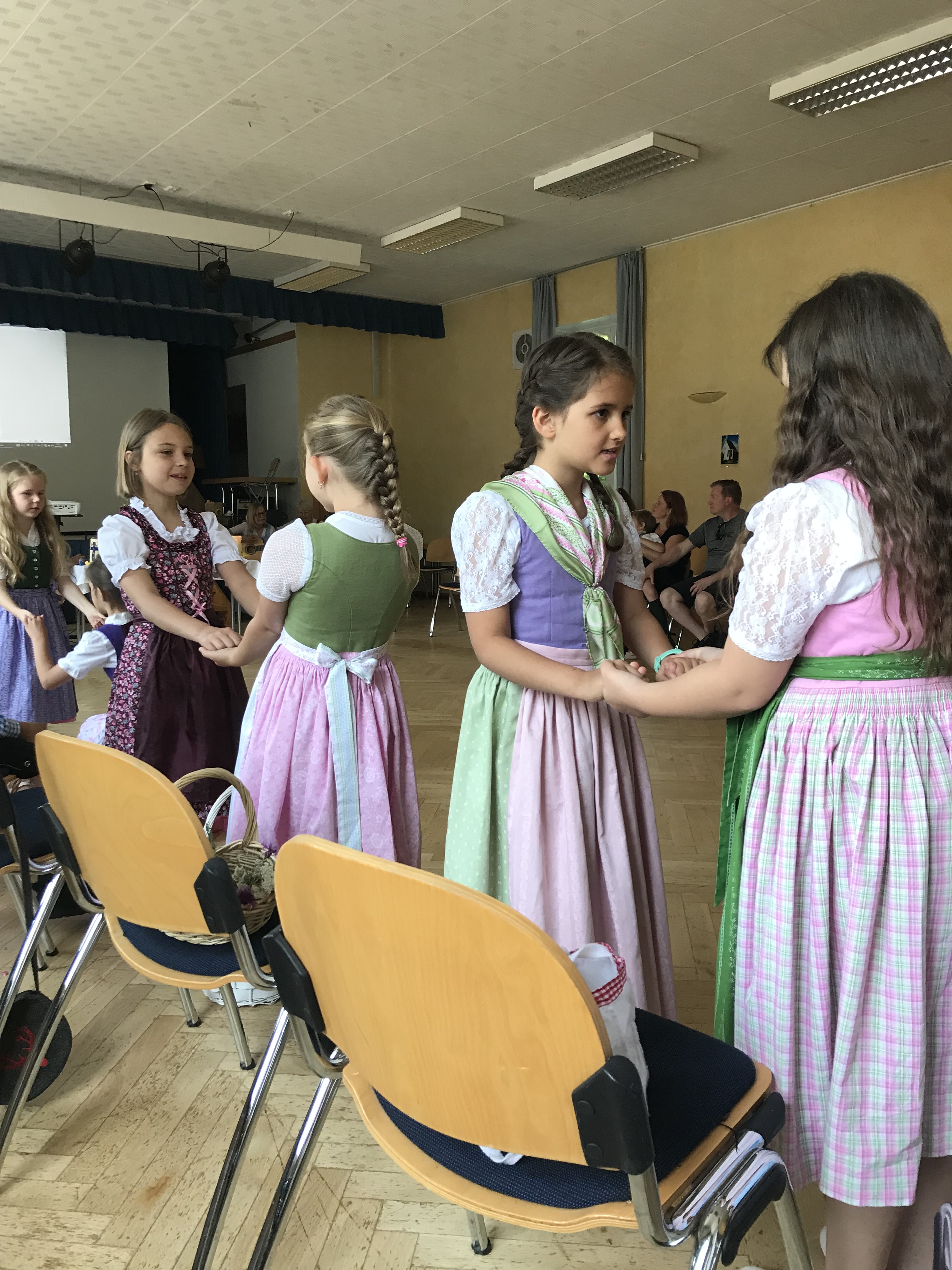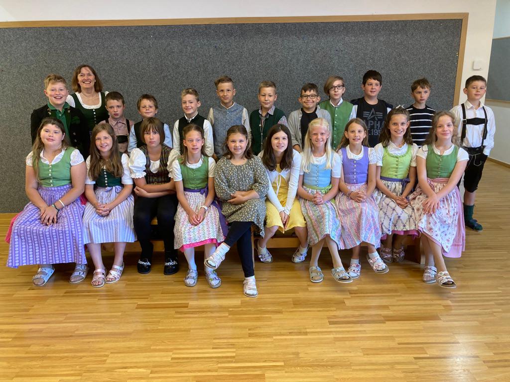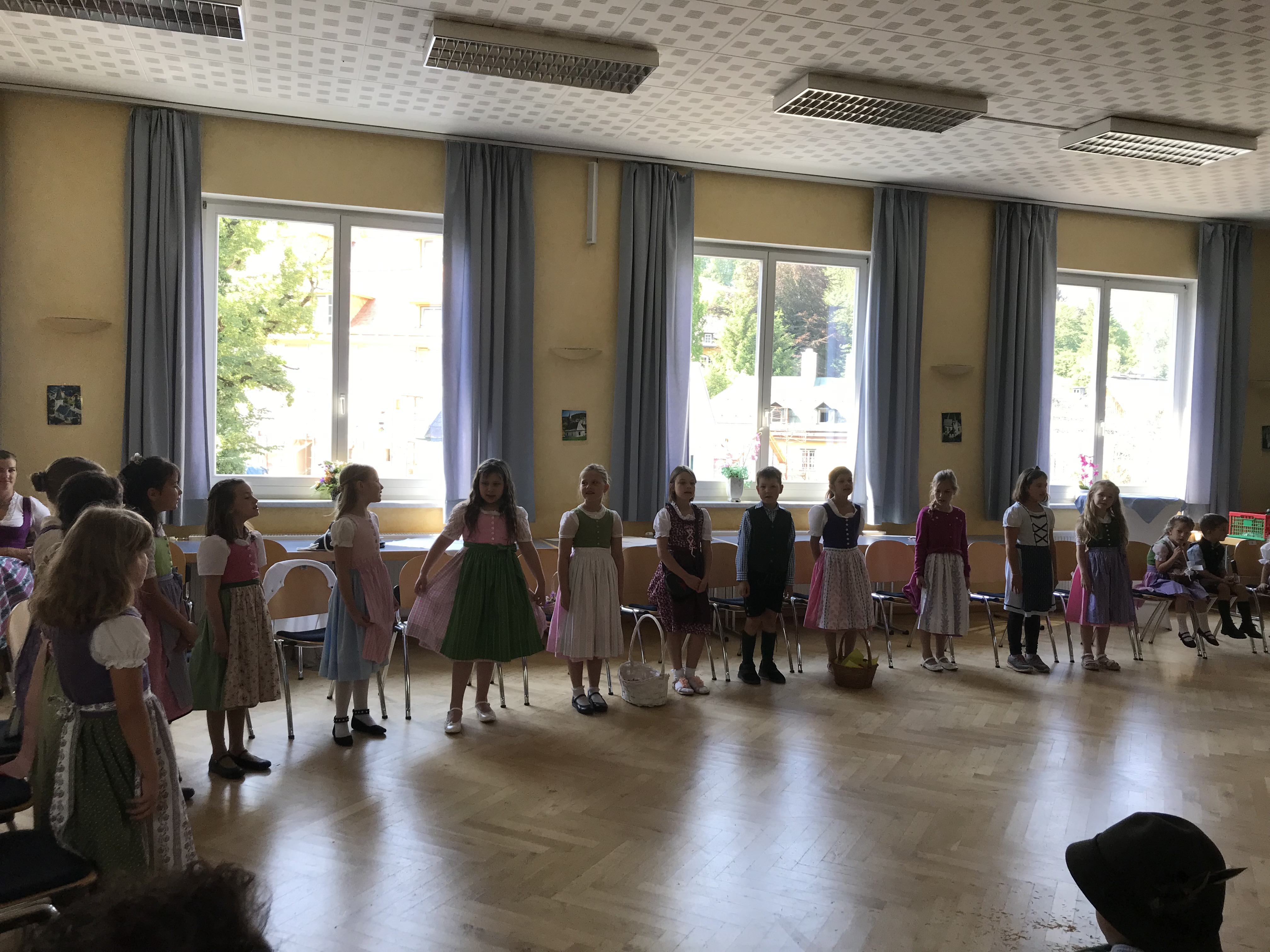 Im Rahmen des Turnunterrichts, des Musikunterrichts und der musikalischen Schwerpunktstunden wurden dafür Volkstänze einstudiert und von den Kindern (1a, 1b, 2b, Musikschwerpunkt) zum Besten gegeben.