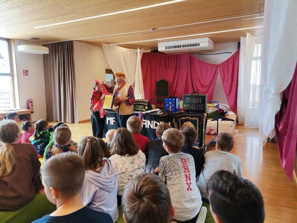 Zum Abschluss wurde den Kindern ein kurzes Theater der beiden Akteure geboten und jedes Kind bekam einen Folder von Oskar und Oliva.