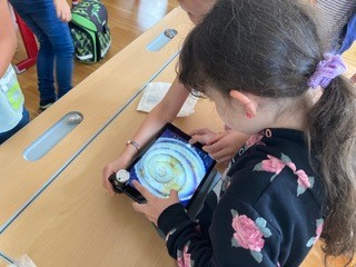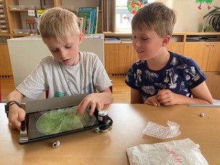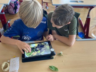 Mit den neuen Handy- beziehungsweise iPad-Mikroskopen, welche an ein digitales Gerät geklemmt werden, konnten die selbst gesammelten Naturmaterialien genau betrachtet werden.