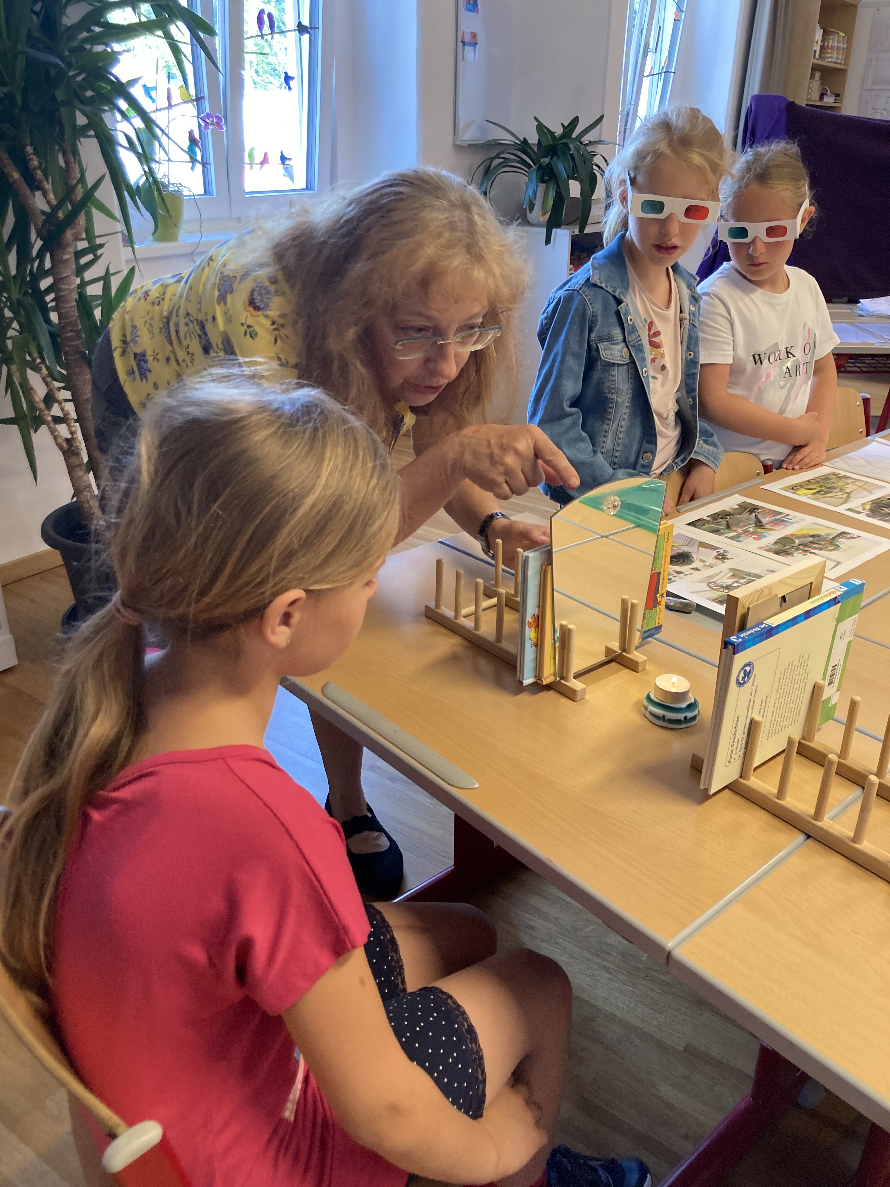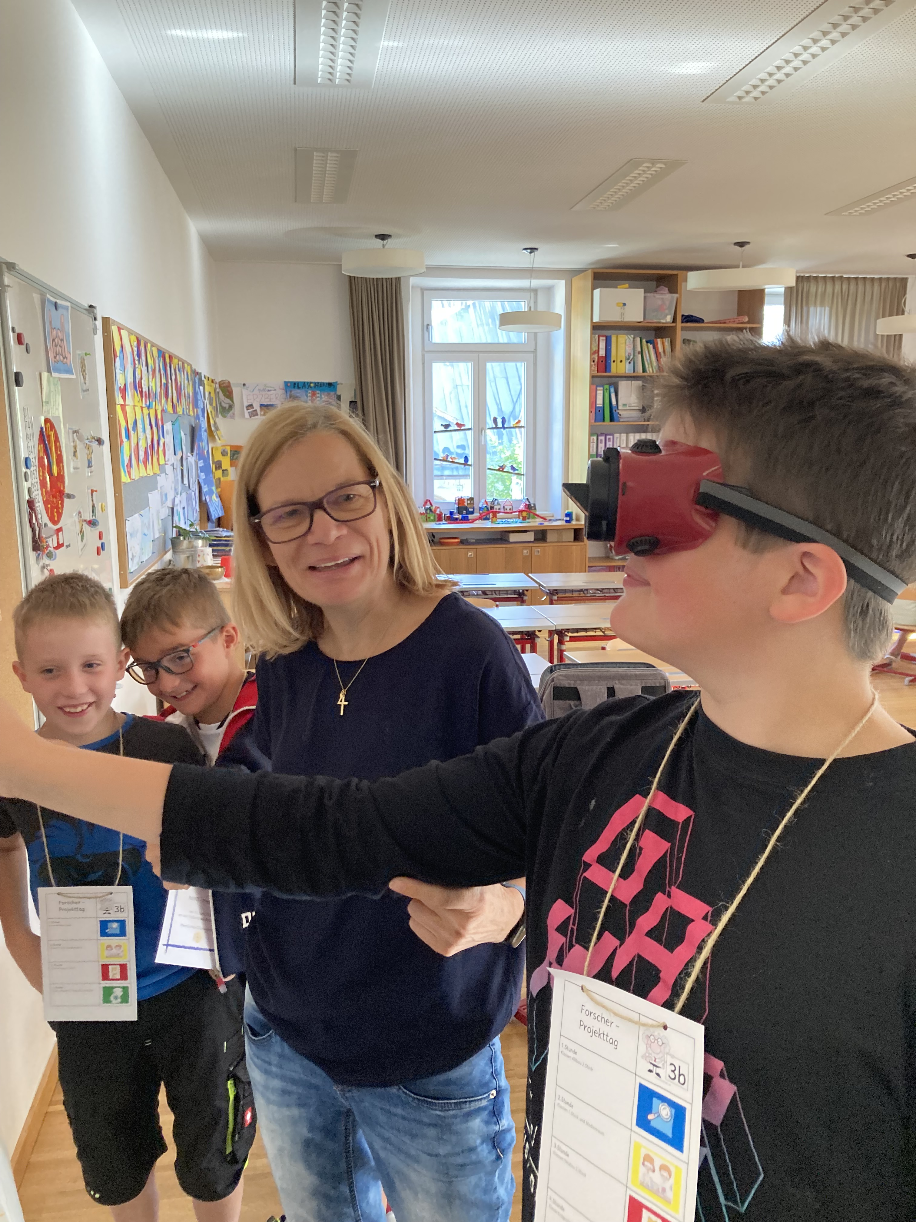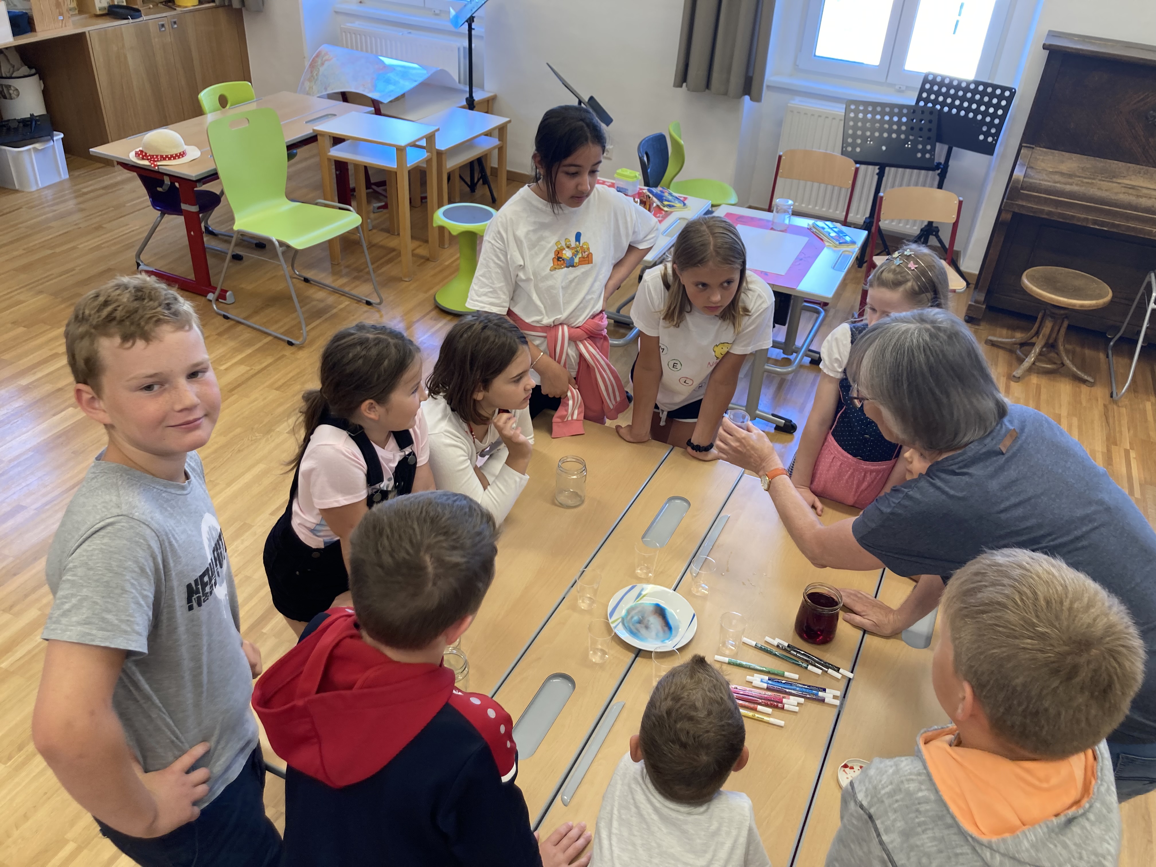 Am Projekttag wurde die Klassen geöffnet und die Kinder in gemischte Gruppen eingeteilt. Im Laufe des Vormittags hatten die Kinder die Möglichkeit zu unterschiedlichen Themen zu forschen und zu experimentieren. Es wurden Versuche zur optischen Täuschung gemacht, mit Farben experimentiert, am iPad programmiert und sogar ein Gummibärchen-Experiment gestartet.
