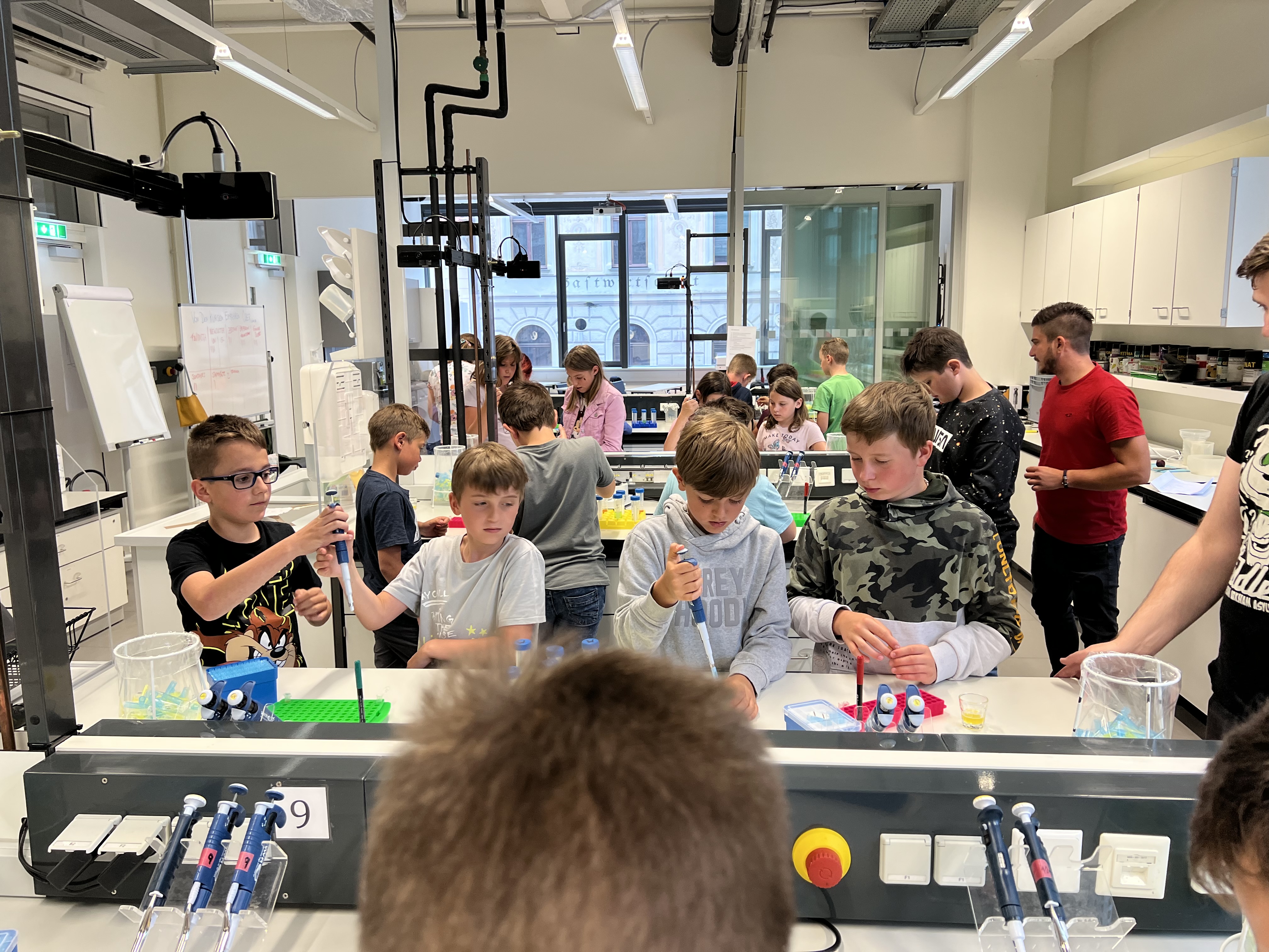 Im Offenen Labor auf der Uni konnten die Kinder ihre eigene DNA bestimmen, im Botanischen Garten entdeckten die Kinder viele interessante Pflanzen, durften Insekten fangen und betrachten. Des Weiteren sammelten sie essbare Pflanzen, die selbstverständlich auch verkostet wurden.