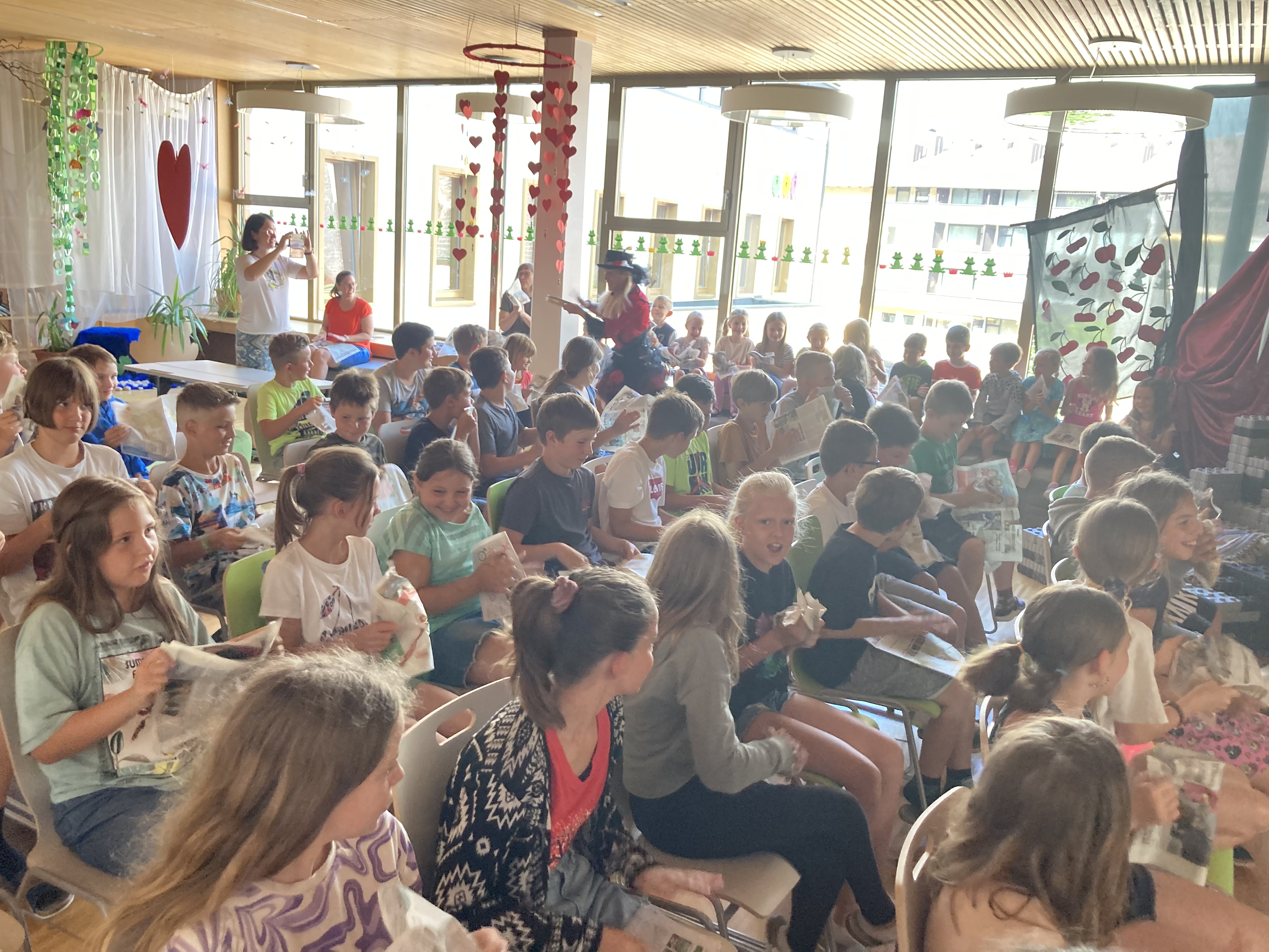 Der Schlussgottesdienst am letzten Schultag stand dieses Jahr besonders im Zeichen des Abschiednehmens. Es wurden 41 Schülerinnen und Schüler der 4. Klassen verabschiedet. Sie starten im Herbst einen neuen Lebensabschnitt.