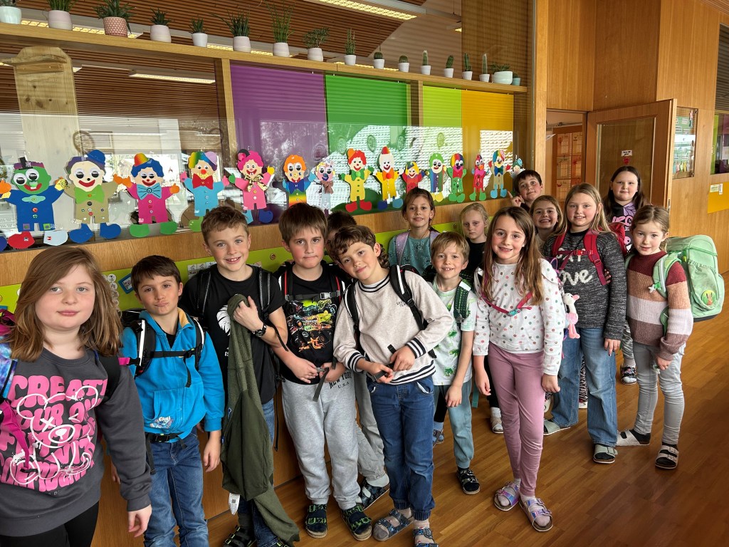 Am Dienstag machten sich die beiden ersten Klassen gemeinsam auf den Weg zum Osterhasendorf. Mit großer Begeisterung bestaunten die Kinder die vielen unterschiedlichen Osterhasen, die alle mit viel Liebe zum Detail gestaltet waren. Nach einer gemütlichen Jausenpause traten sie schließlich wieder den Rückweg zur Schule an. Nun hoffen alle, dass das Warten auf den Osterhasen nicht mehr allzu lange dauert.