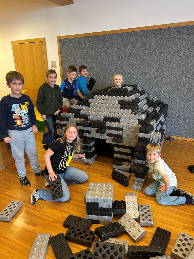 Im Rahmen des sozialen Lernens haben die Kinder gemeinsam aus Bausteinen ein Iglu gebaut. Dabei waren Teamarbeit, Rücksichtnahme und Zusammenhalt gefragt – und das Ergebnis konnte sich sehen lassen.