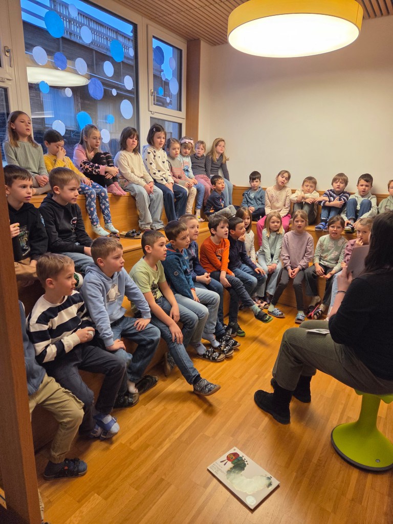Die Kinder der 1b und 2b lernten im Englischunterricht „The Very Hungry Caterpillar“ kennen. Gemeinsam erarbeiteten sie die Geschichte auf Englisch, malten passende Bilder dazu aus und erzählten, was sie gerne essen. Es war eine tolle und abwechslungsreiche Englischstunde.