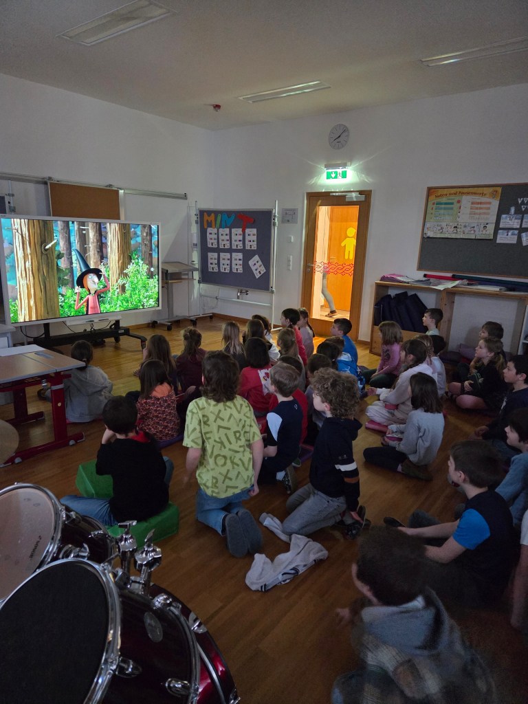 Die 1b, 2b und 3b erlebten eine gemeinsame Englischstundet. Gemeinsam schauten sie zuerst den Film Room on the Broom an. Im Anschluss wurden Fragen zur Geschichte beantwortet und Inhalte gemeinsam besprochen.