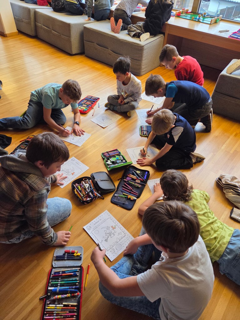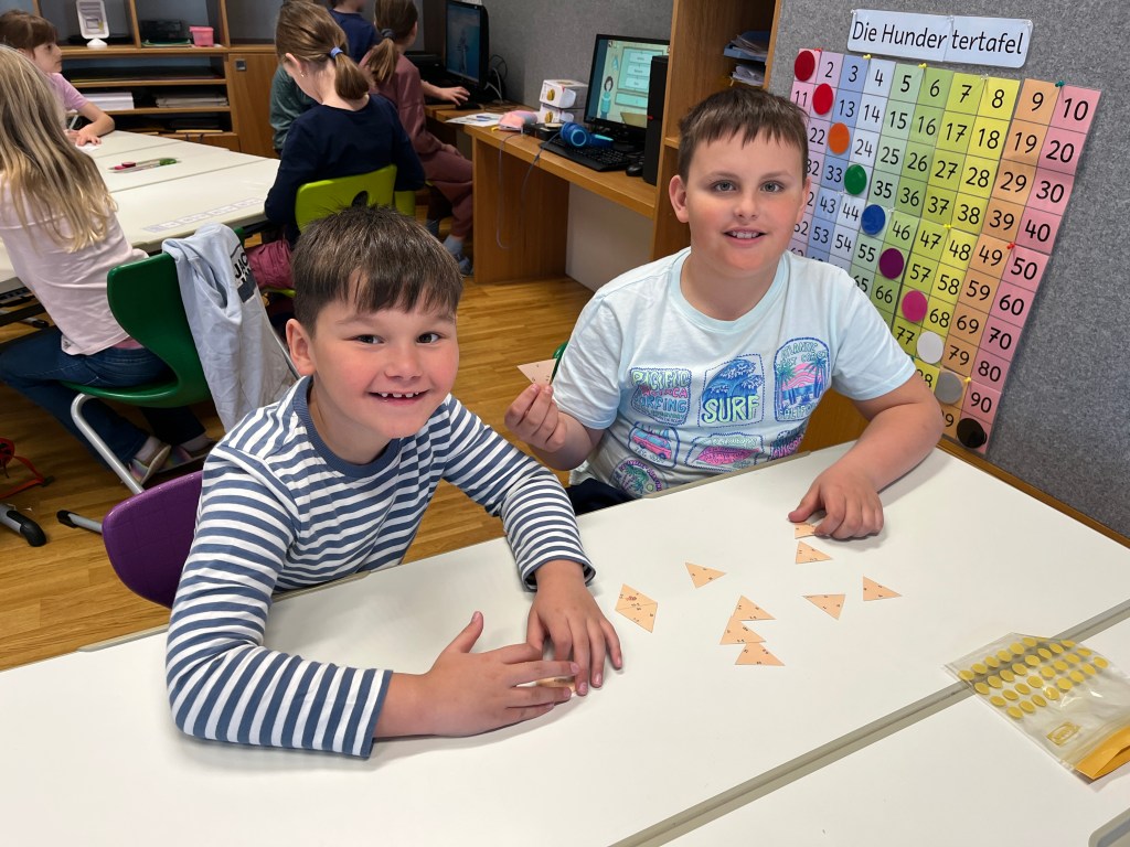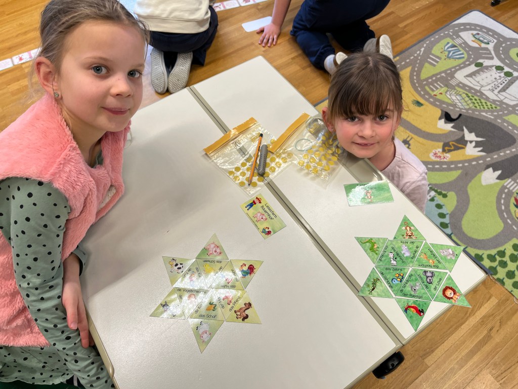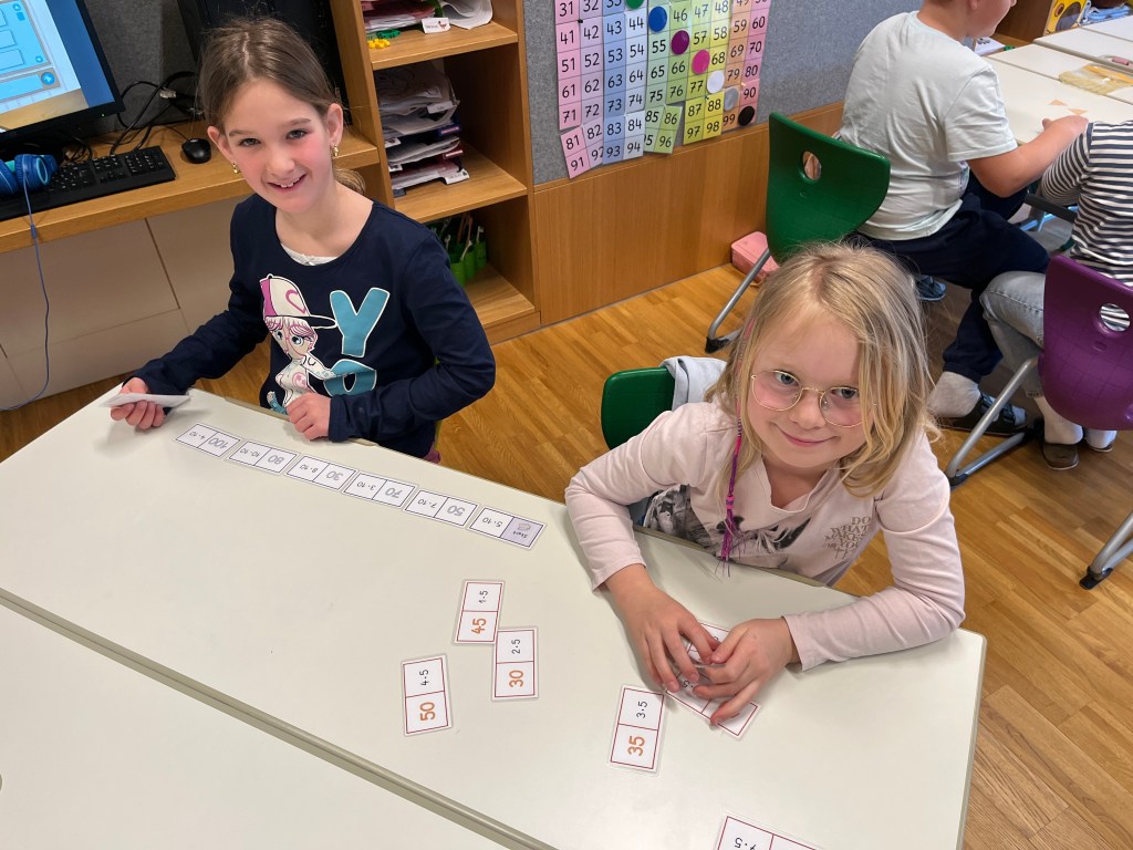 Beim Malrechnen übten sie die 5er-, 10er- und 1er-Reihe an verschiedenen Stationen und festigten ihr Wissen spielerisch. Auch das Lesen kam nicht zu kurz – mit Lesespielen wie Lesedomino oder Lesesternen trainierten die Kinder ihre Lesefähigkeit.