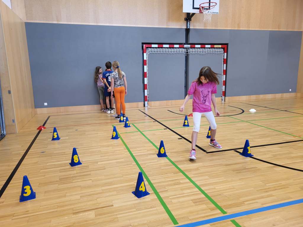 Auf einem abgesteckten Übungsplatz mit Verkehrshütchen wurden verschiedene Aufgaben gestellt: Slalomfahren, richtiges Anhalten, Spurhalten und das sichere Abbiegen mit Handzeichen. So lernten die Kinder spielerisch, wie wichtig Gleichgewicht, Aufmerksamkeit und richtiges Verhalten im Straßenverkehr sind.