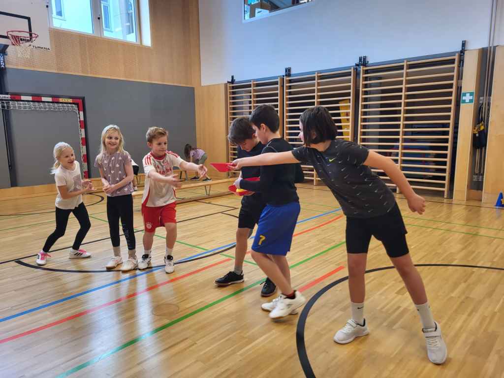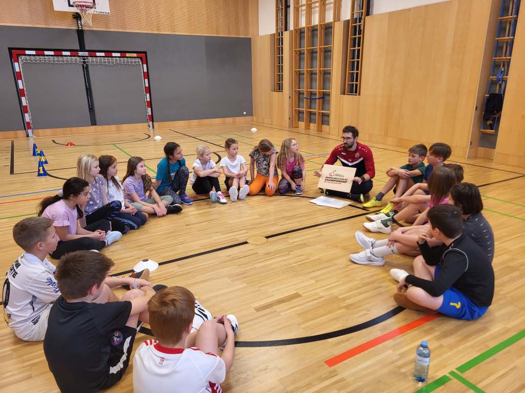 Stefan vom FCA besuchte unsere Schule und verbrachte eine Stunde mit den 4. Klassen. Er stellte das Programm vor, bei dem die Kinder mit viel Spaß aktiv mitmachen.