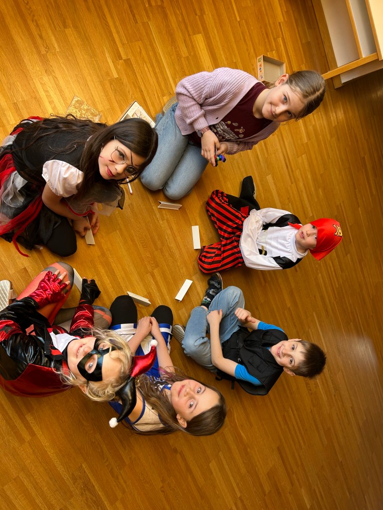 Alle Kinder halfen zusammen, unterstützten sich gegenseitig und hatten viel Freude dabei – es war eine lustige und sehr spannende Englischstunde!