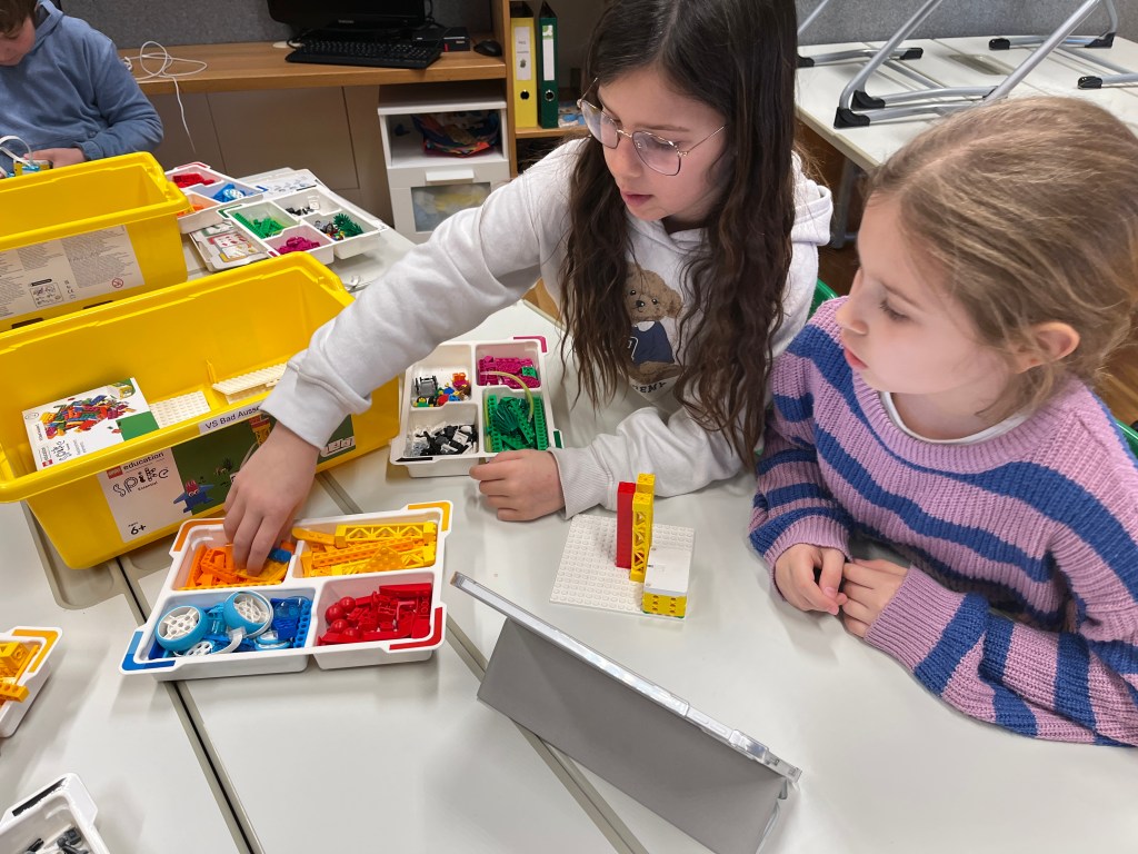 Ein Highlight war die Arbeit mit Lego Spike. Mit viel Begeisterung und Kreativität bauten die Kinder eigene Modelle und programmierten diese anschließend selbst. Schritt für Schritt lernten sie, wie man einfache Abläufe erstellt, Probleme löst und gemeinsam im Team arbeitet. Dabei wurden nicht nur technische Fähigkeiten gefördert, sondern auch logisches Denken und Ausdauer gestärkt.