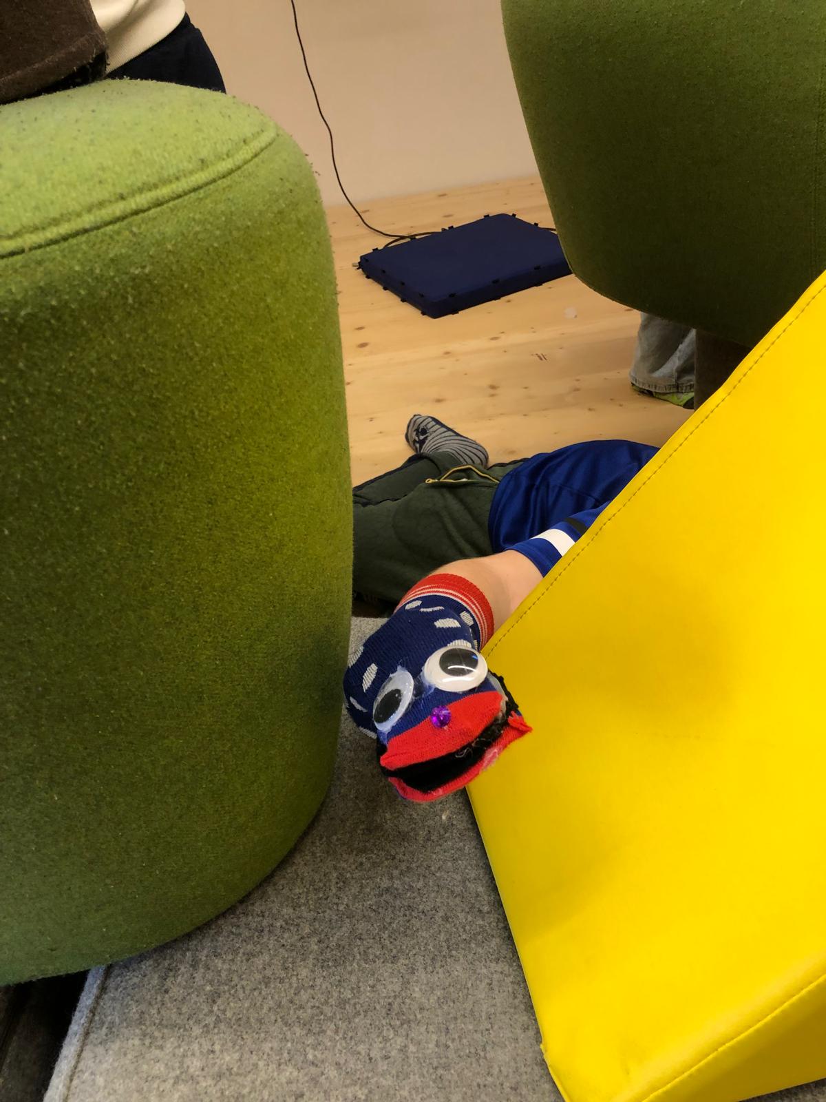Die Kinder der Nachmittagsbetreuung bastelten kreative Puppen aus Socken. Mit diesen planen sie auch ein lustiges Theaterstück.