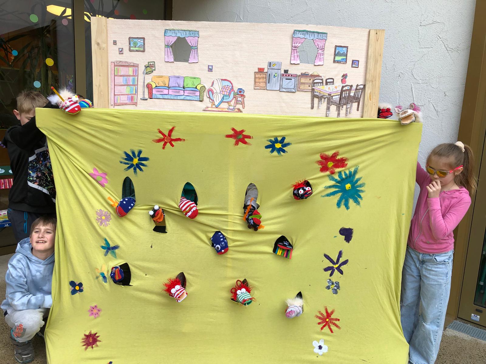 Mit viel Kreativität und Teamarbeit haben die Kinder der Nachmittagsbetreuung passend zu ihren selbst gebastelten Sockenpuppen ein beeindruckendes Bühnenbild entworfen und gestaltet. Wir freuen uns schon auf viele fantasievolle und spannende Theateraufführungen, die uns zum Staunen bringen werden!
