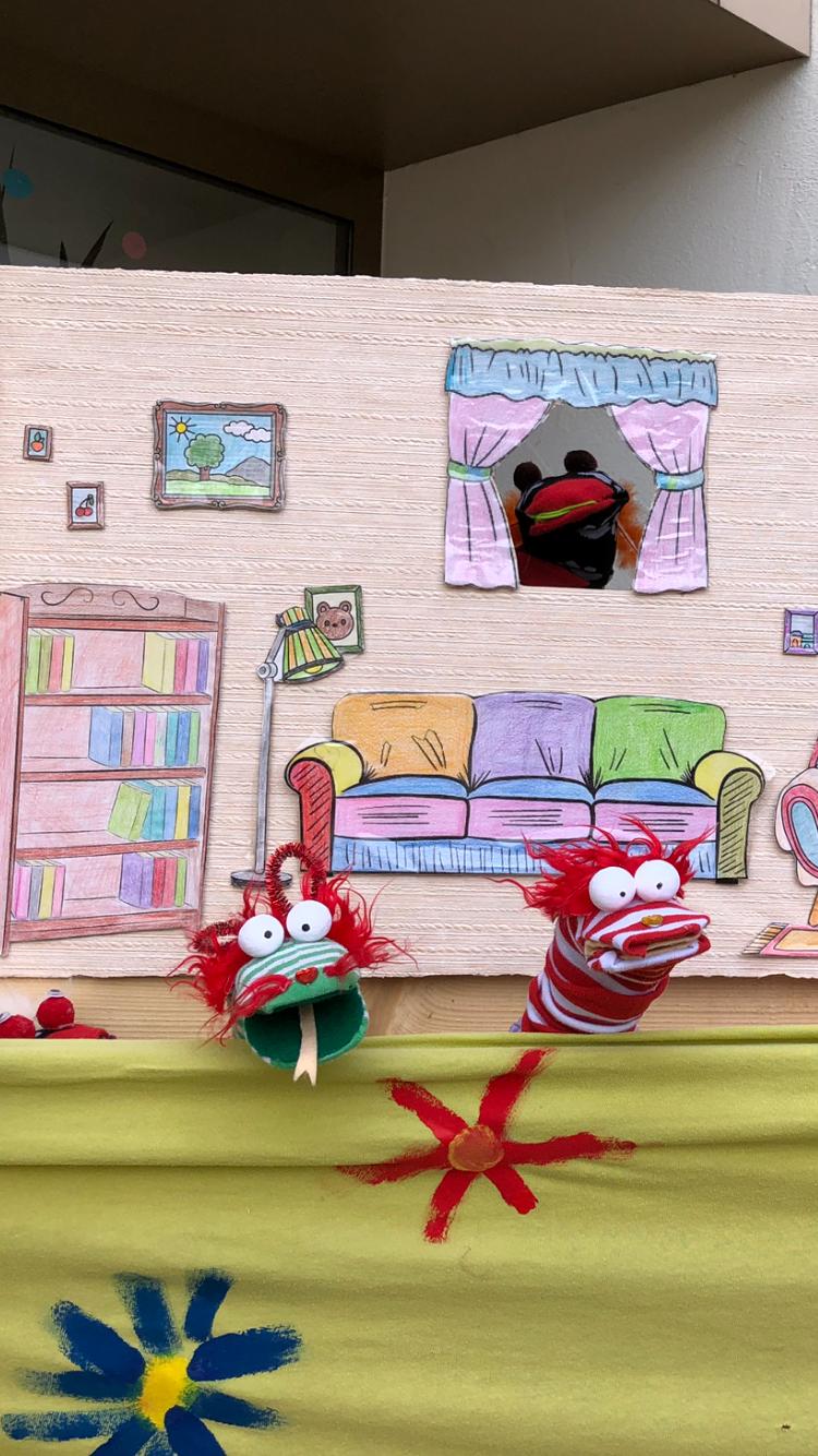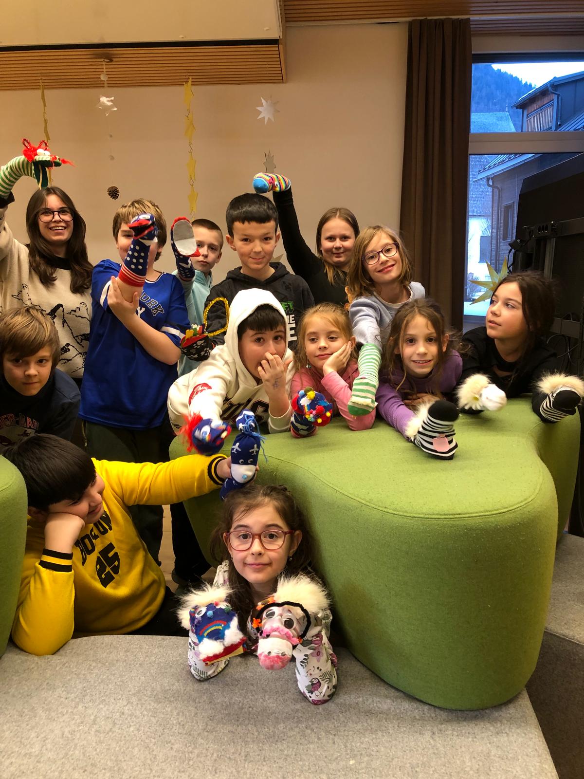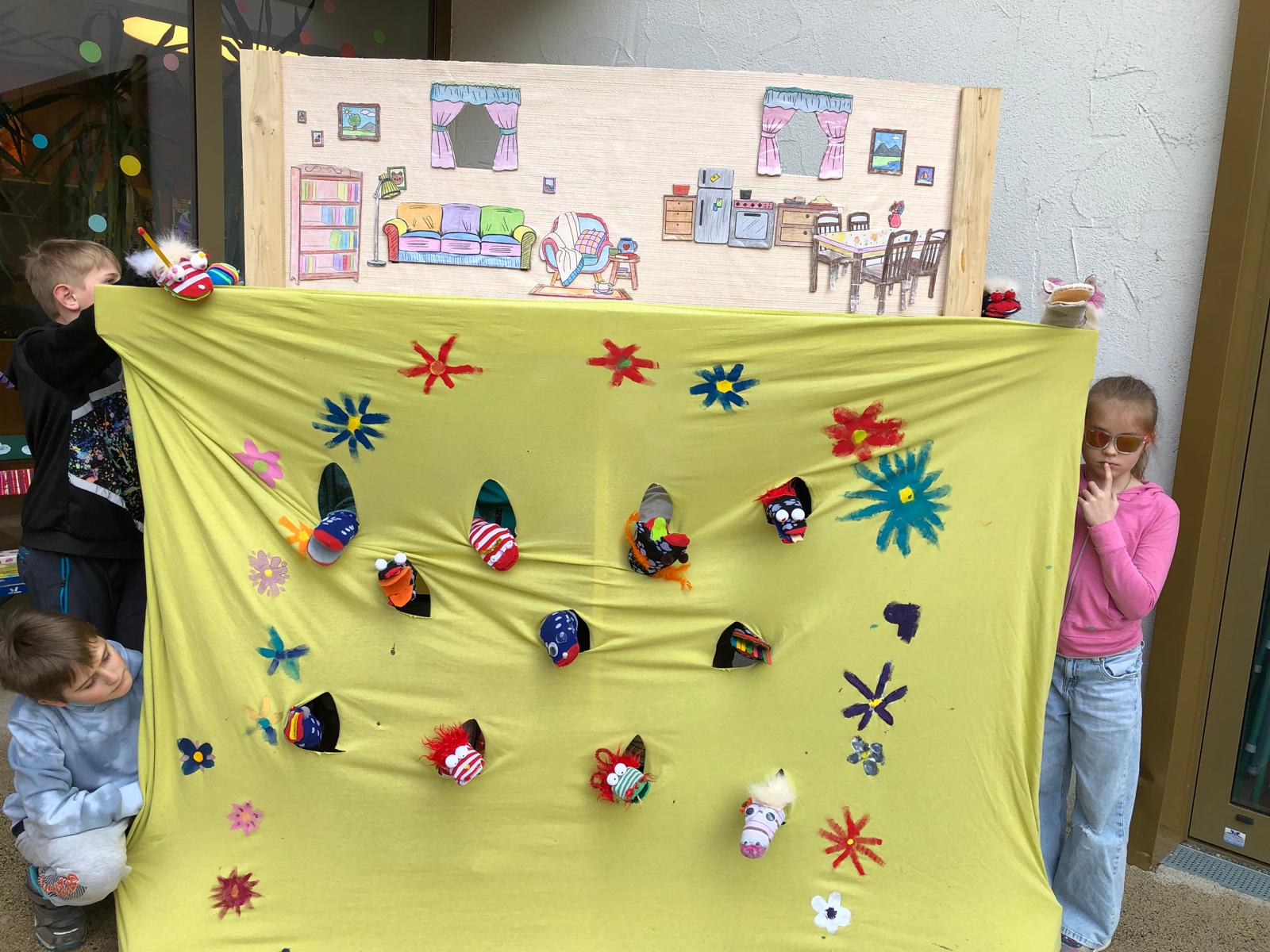Mit großer Begeisterung führten die Kinder ihr selbst einstudiertes Sockenpuppentheater auf – ein voller Erfolg, der Jung und Alt gleichermaßen zum Lachen brachte!