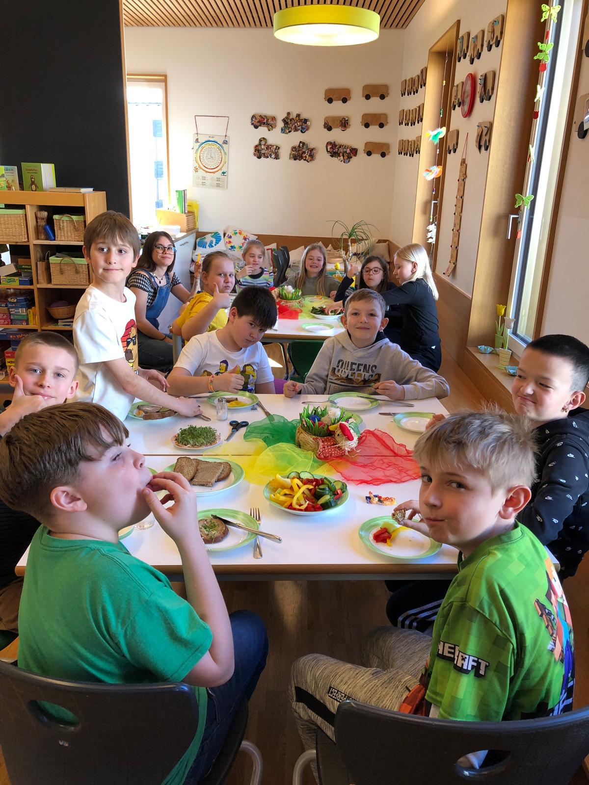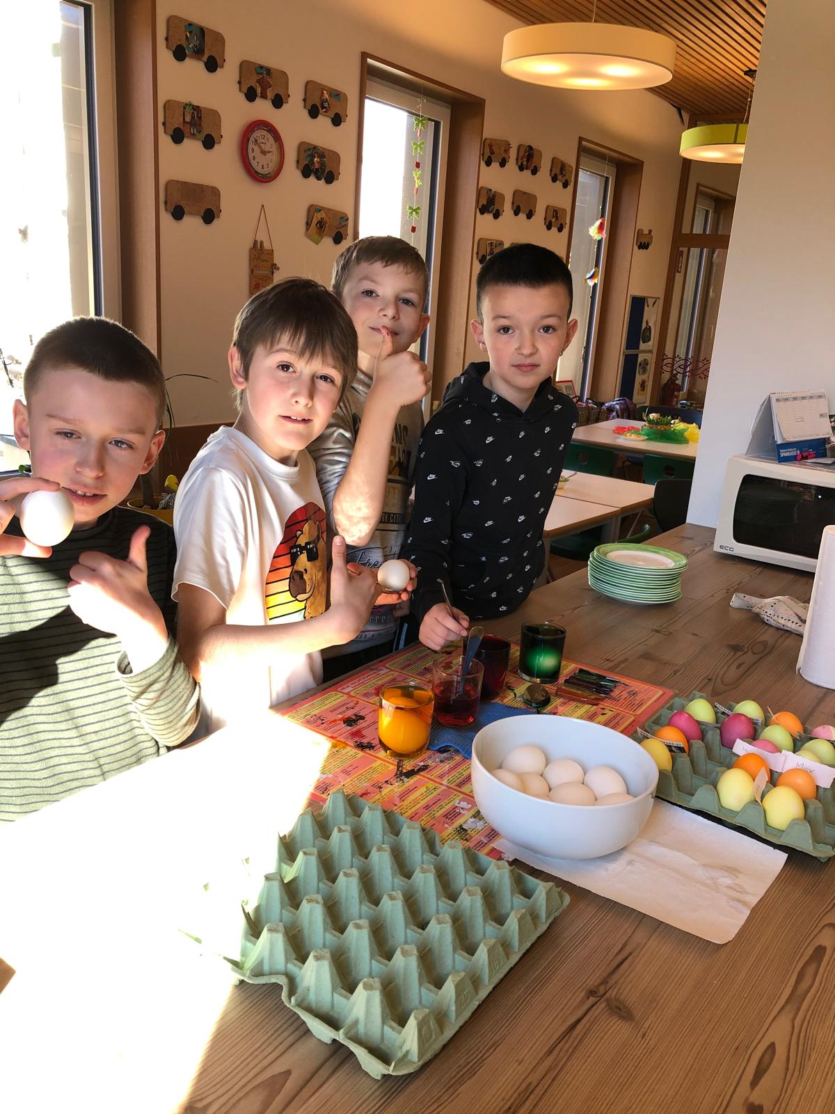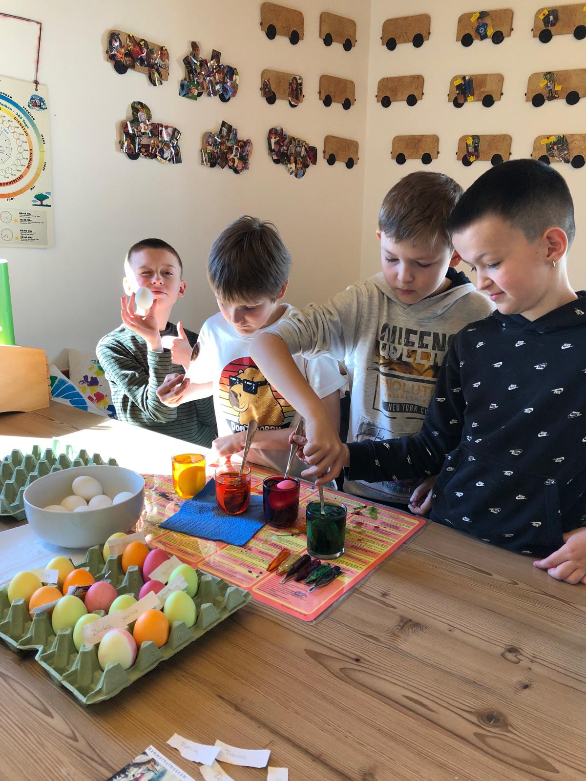 In der GTS wurden bereits Ostereier gefärbt. Nach dem Färbespaß gab es eine leckere Osterjause für die Kinder.