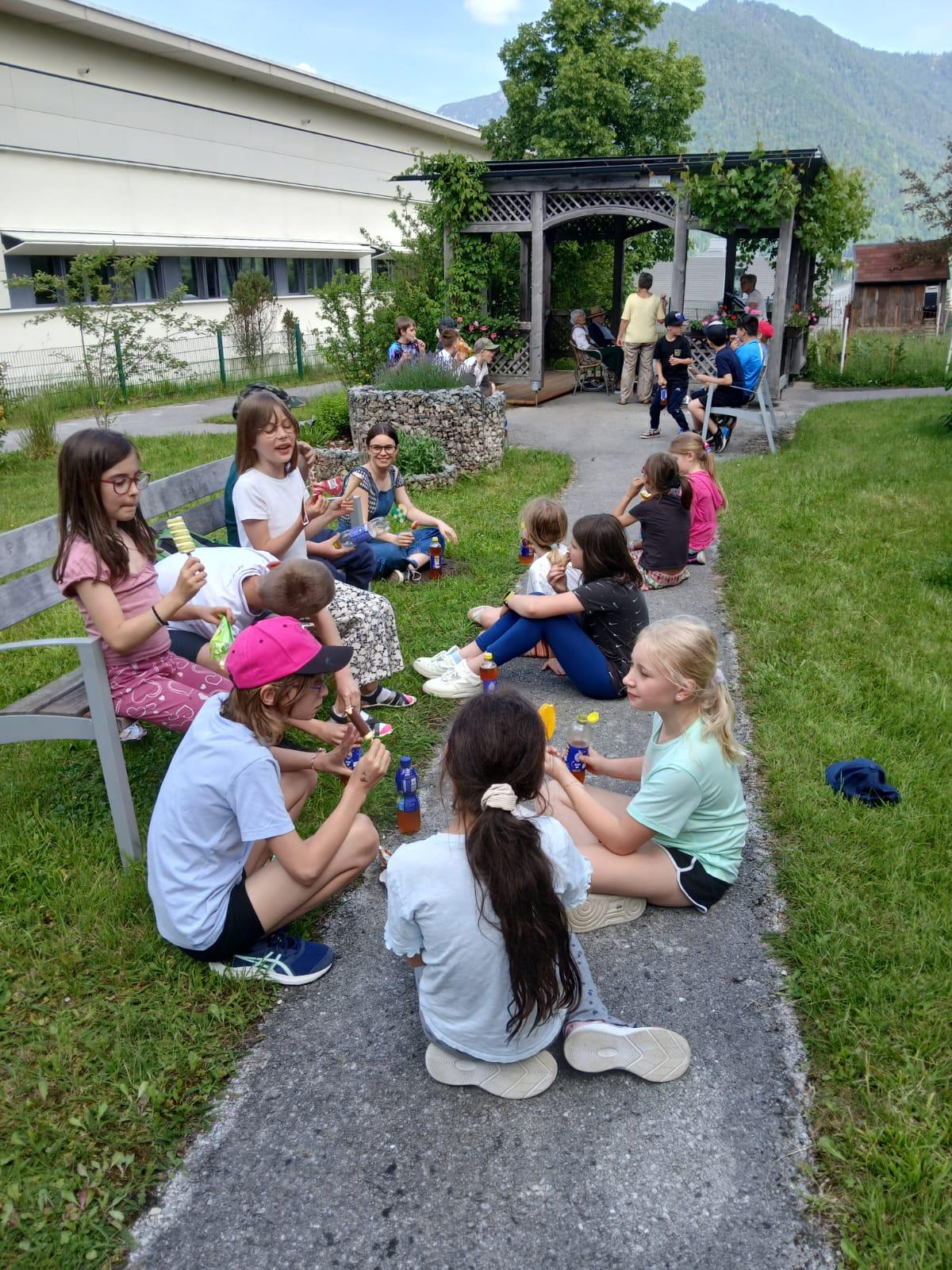 Zur Belohnung gab es für die kleinen Künstlerinnen und Künstler erfrischendes Eis und Saft, liebevoll vom Team des Seniorenheims bereitgestellt.