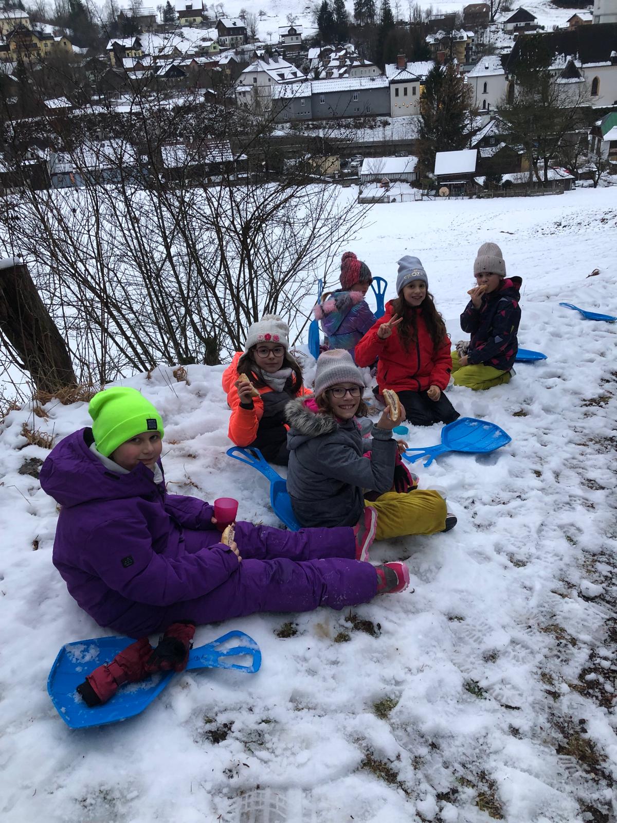 Der erste Schnee in diesem Schuljahr wurde gleich genutzt um im Schnee zu toben und mit dem Bob zu fahren. Die Kinder hatten großen Spaß!