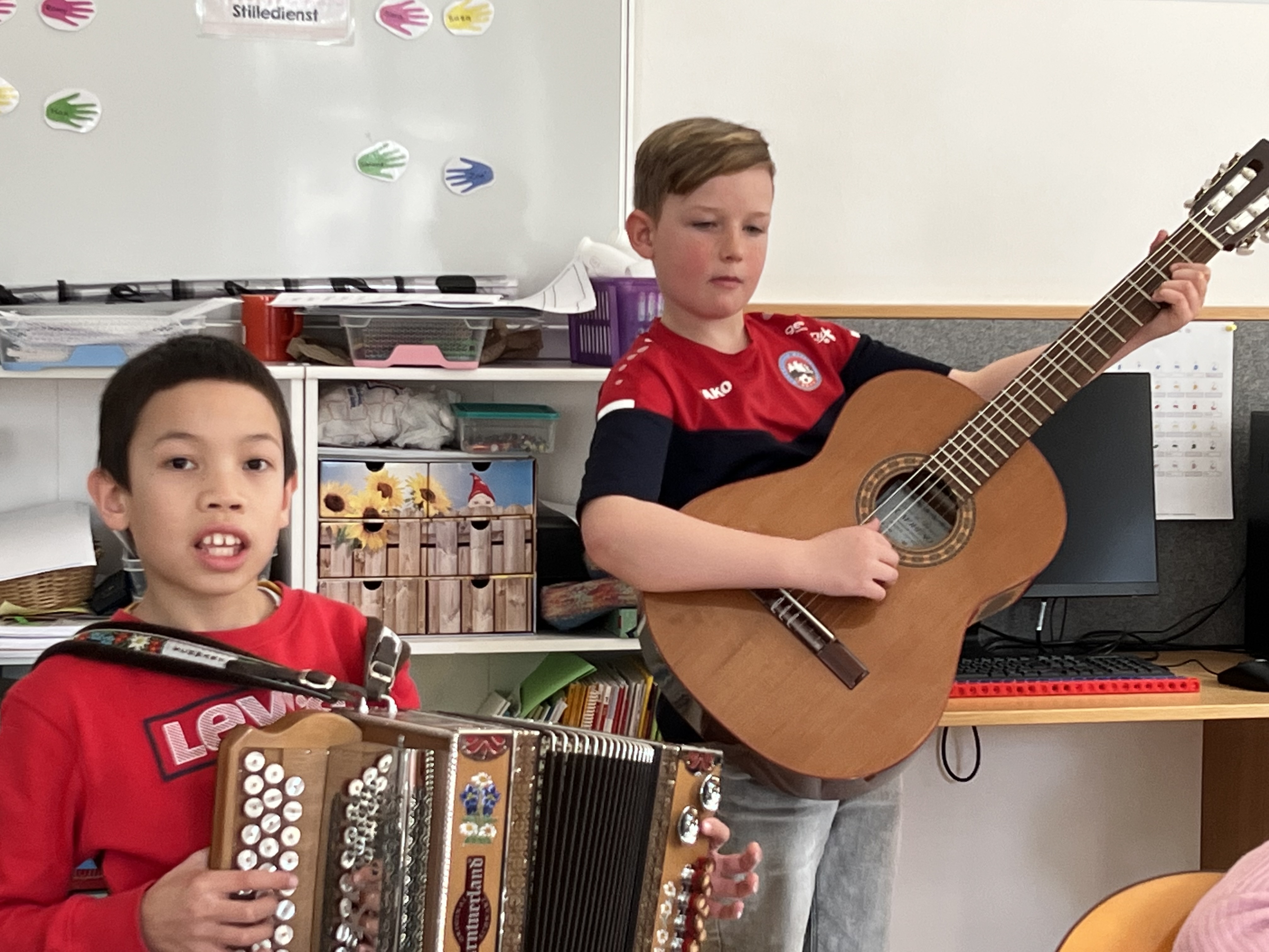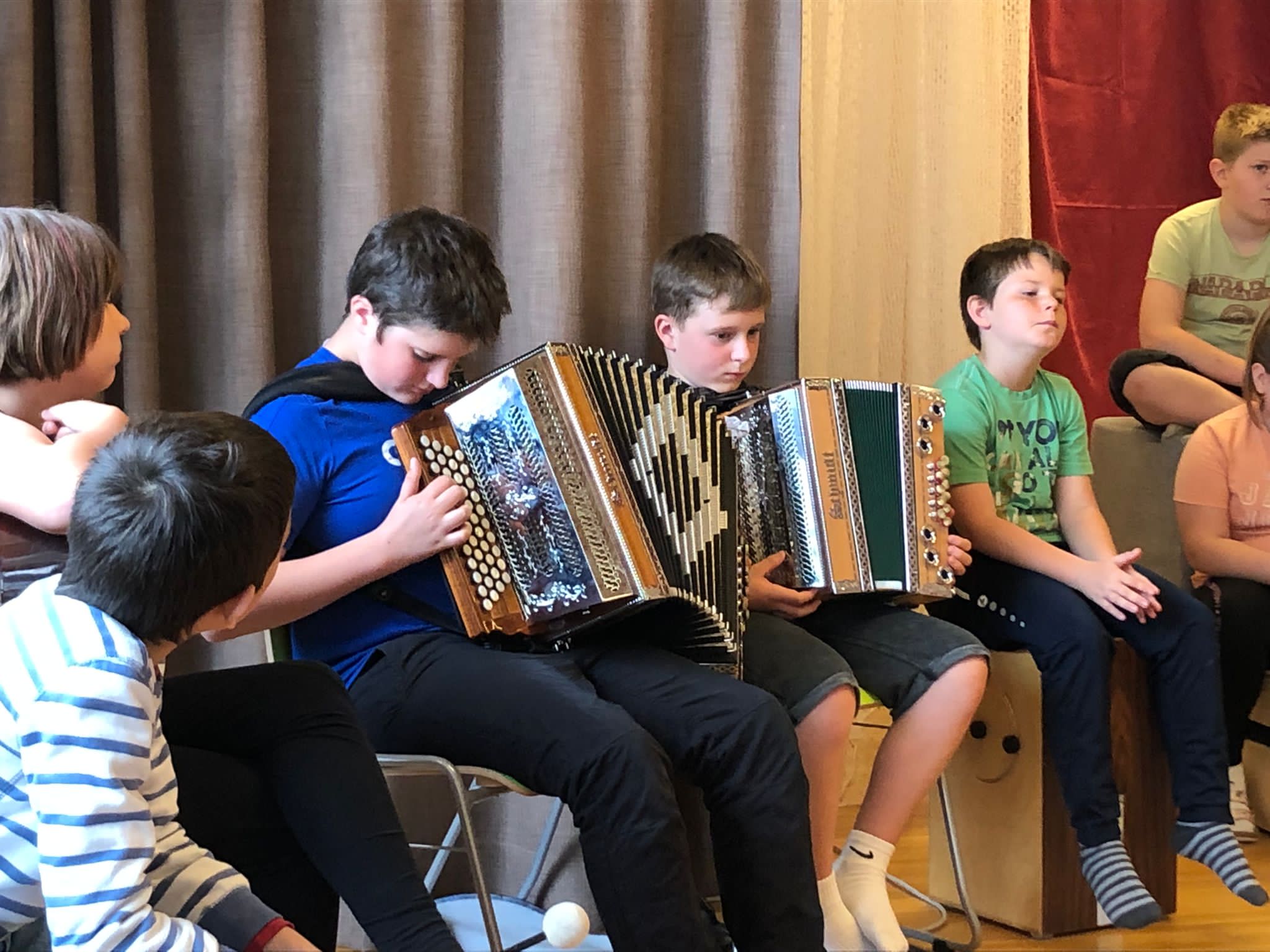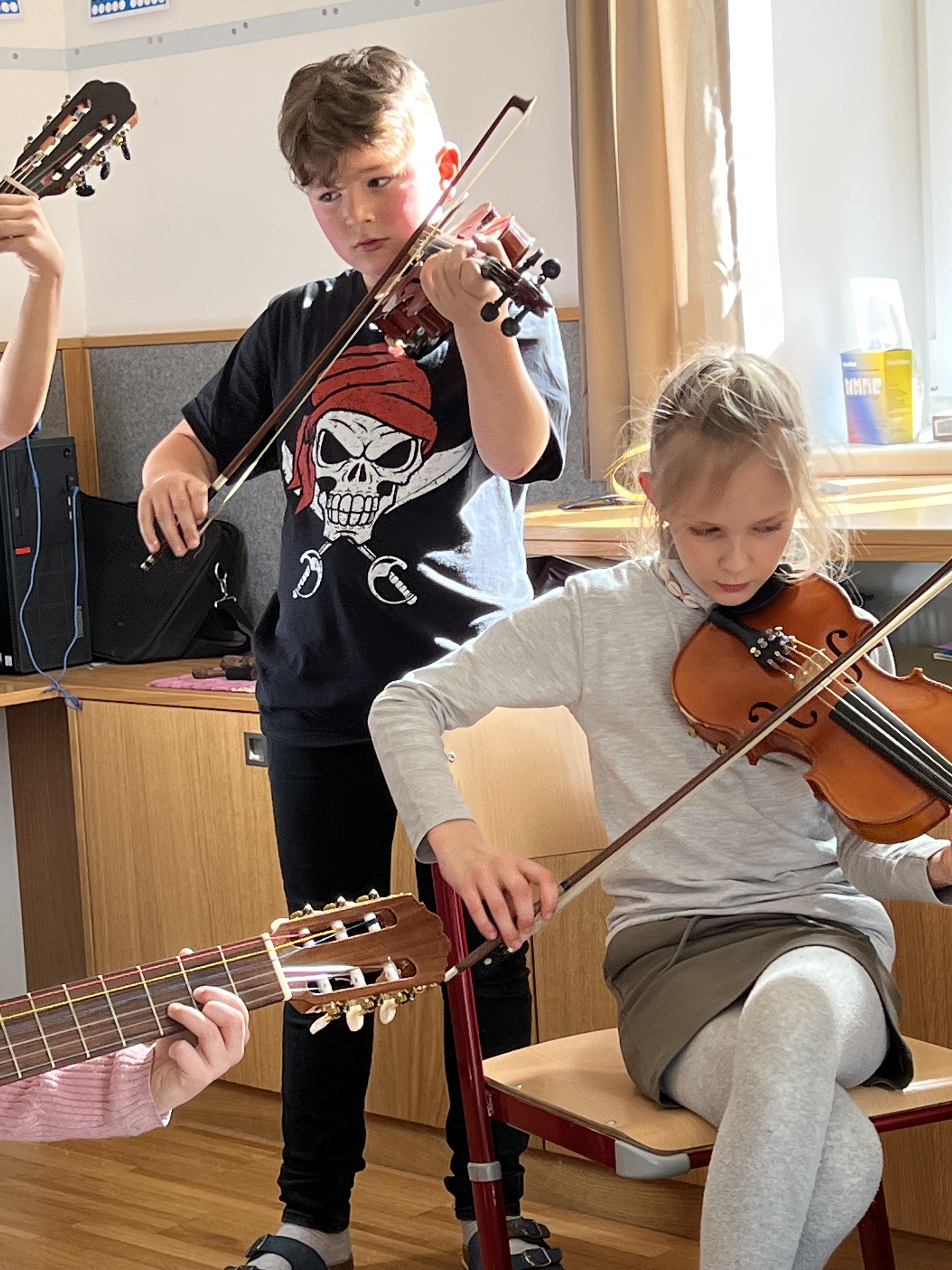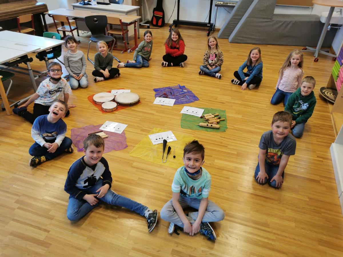 Die Kinder der 1.Klassen haben die Möglichkeit, zusätzlich am eigenen Instrument Erfahrungen zu sammeln. Der Schwerpunkt bietet folgende Inhalte: