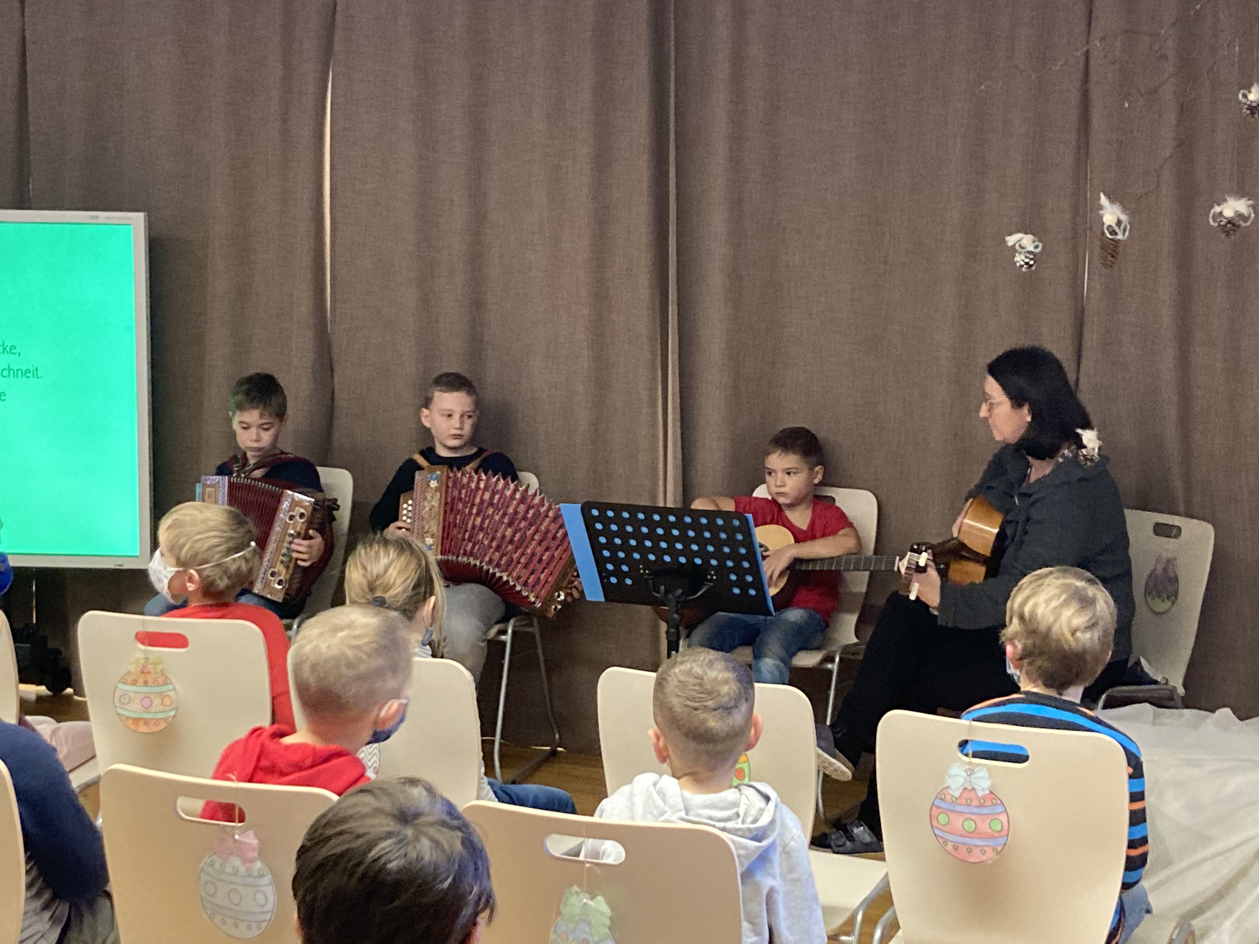 Ein vielseitiges musikalisches Angebot ermöglicht den Kindern intensive Erfahrungen im musikalischen Bereich, dient der Persönlichkeitsentwicklung des Kindes, trägt zur Lockerung bei psychophysischen Hemmungen bei, steigert Konzentrationsfähigkeit und Ausdauer und erleichtert die Entfaltung sozialer Verhaltensweisen. Fantasie, Kreativität und divergentes Denken weiterzuentwickeln sind zentrale Anliegen.