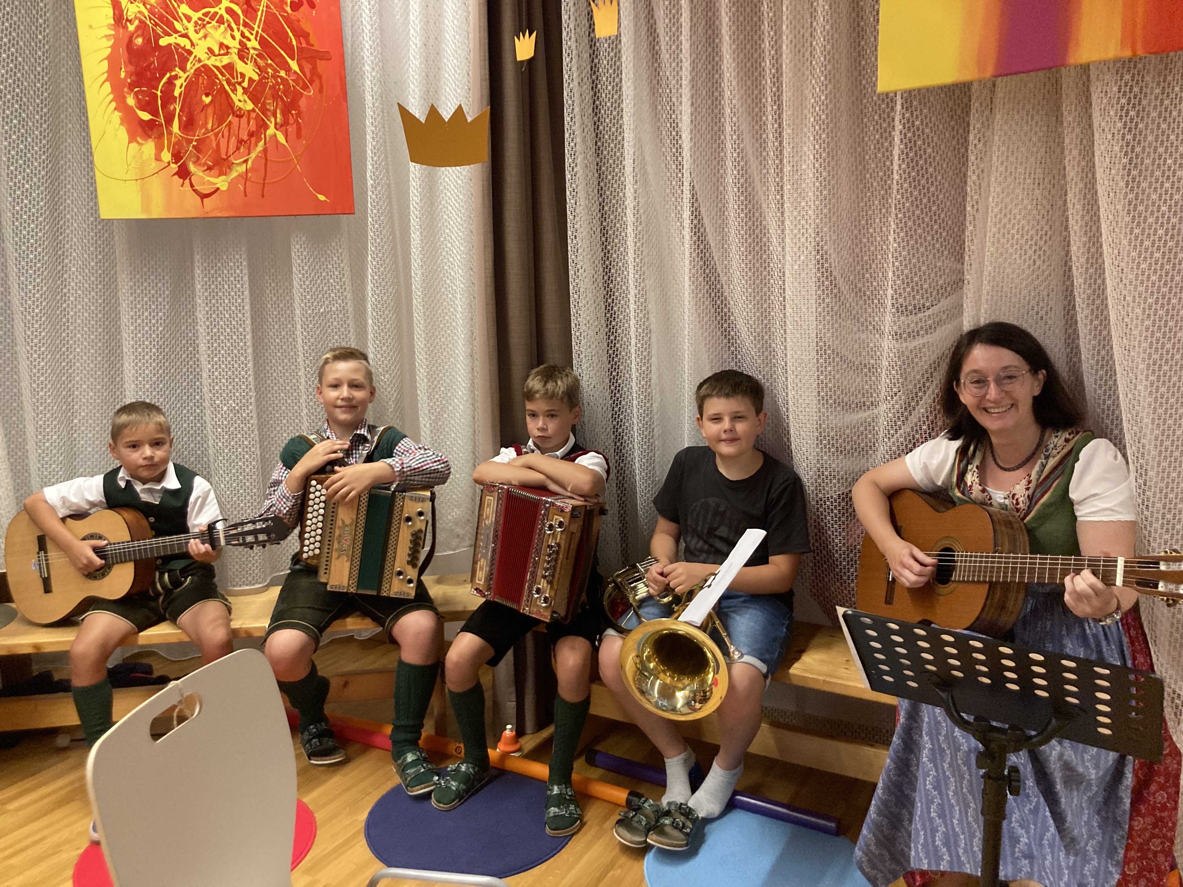 - Musik in allen Formen: Rhythmik, Liedgestaltung / Liedbegleitung, Klangexperimente mit Sprach- und Singstimme